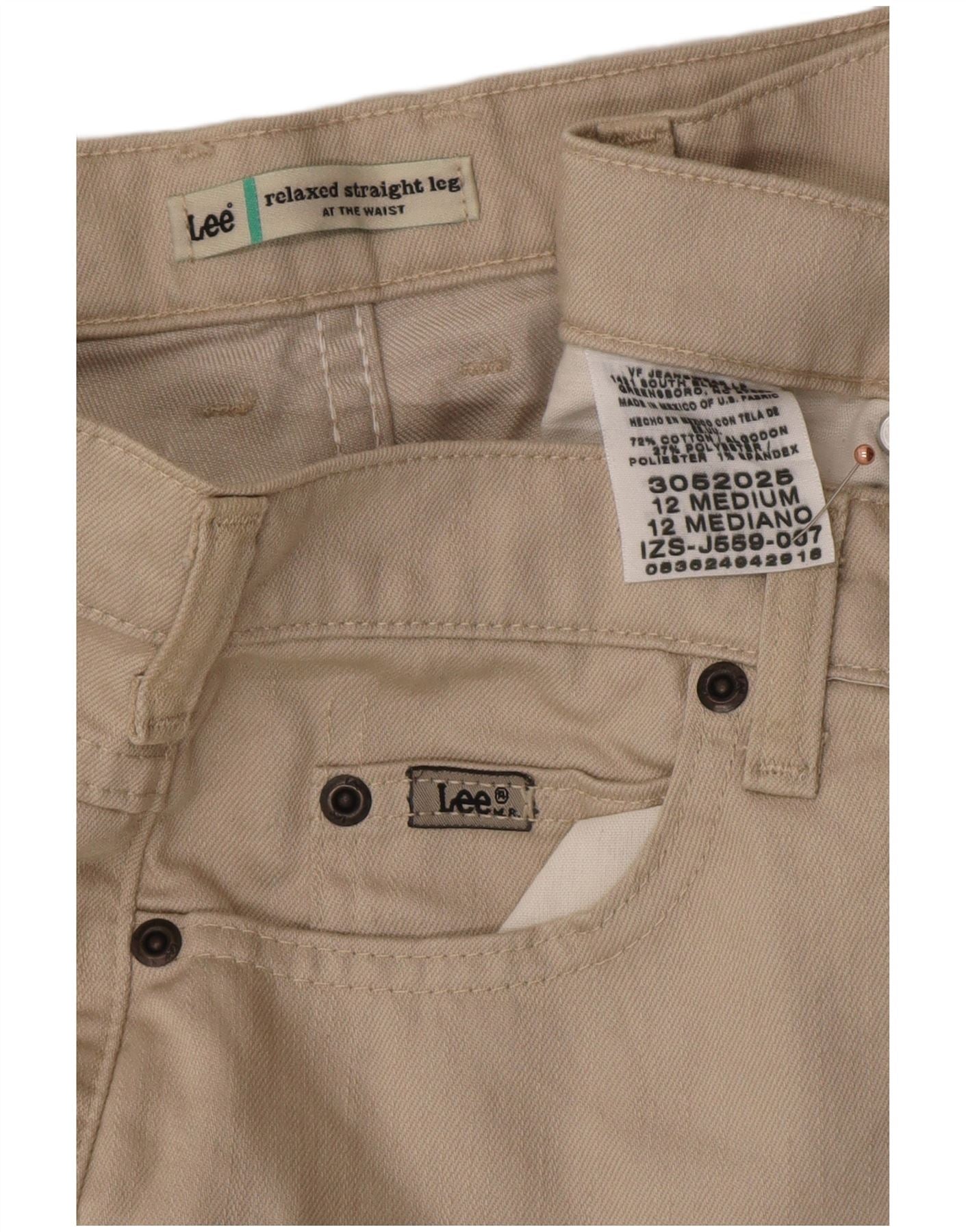 LEE Womens Relaxed Fit Straight Jeans US 12 Large W32 L31 Beige Cotton