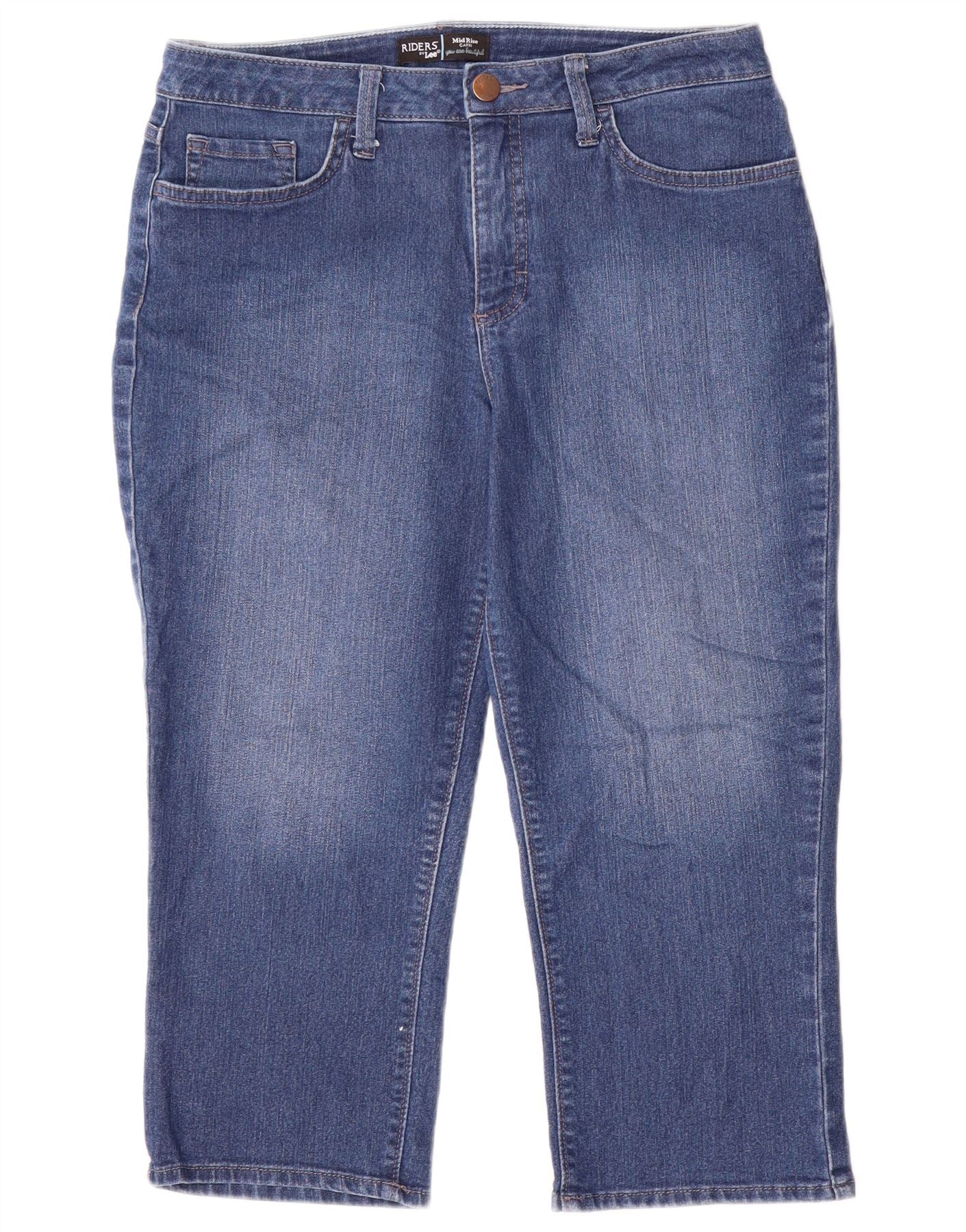 Lee Womens Riders Mid Rise Capri Jeans US 10 Large W32 L21 Blue Cotton
