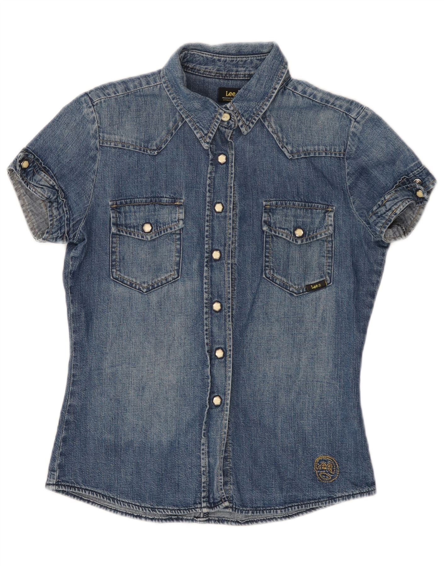 LEE Kortærmet denimskjorte til kvinder UK 10 Lille blå bomuld