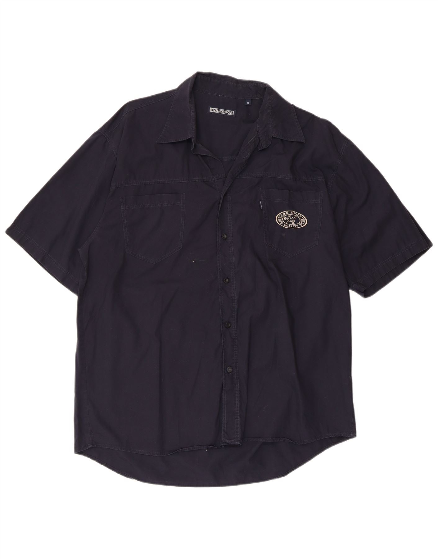 Lerros kortærmet herreskjorte XL marineblå bomuld