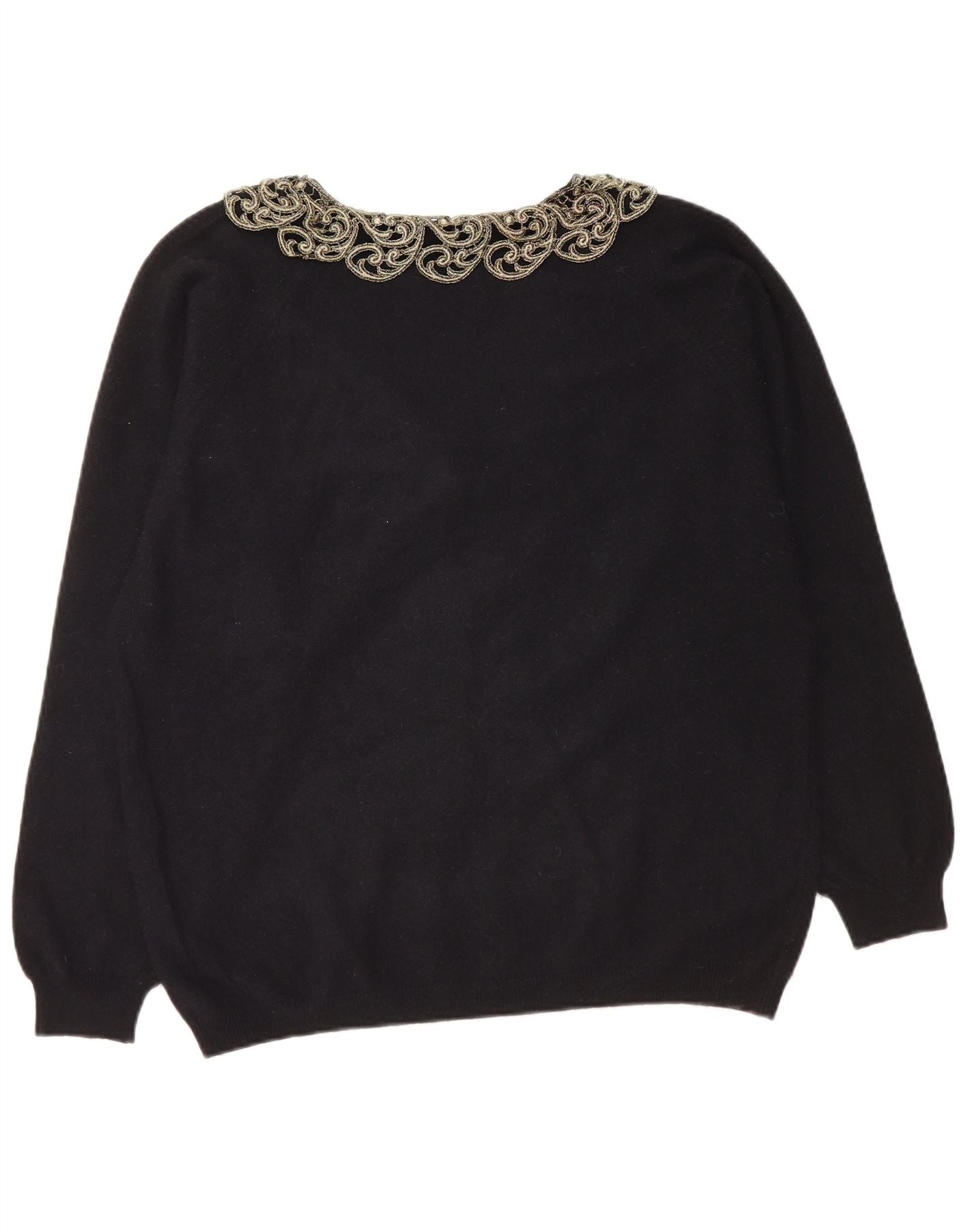 LETIZIA L. Dame V-hals sweater UK 16 Large Black Paisley Wool