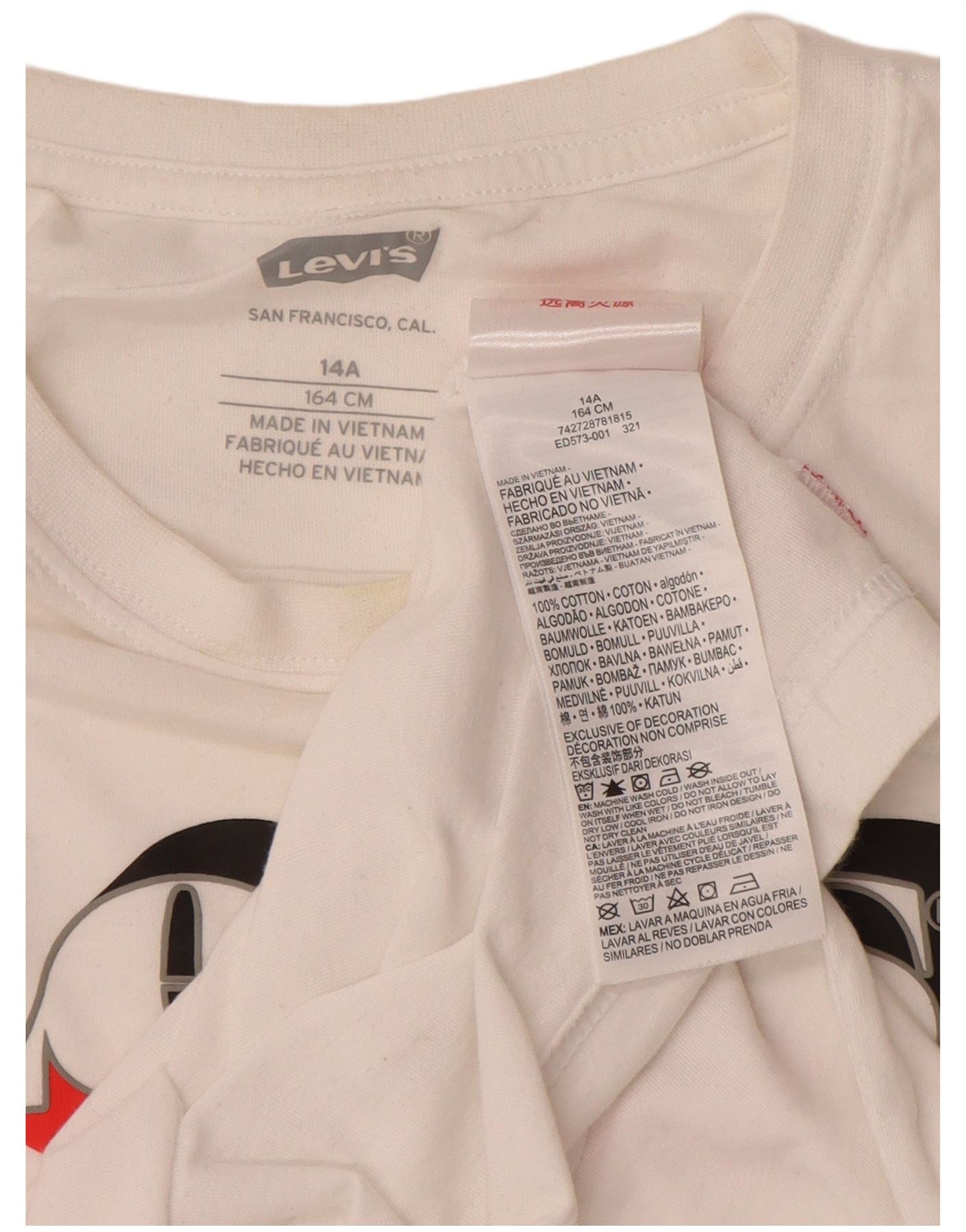 LEVI'S Drenge Grafisk T-Shirt Top 13-14 År Hvid Bomuld