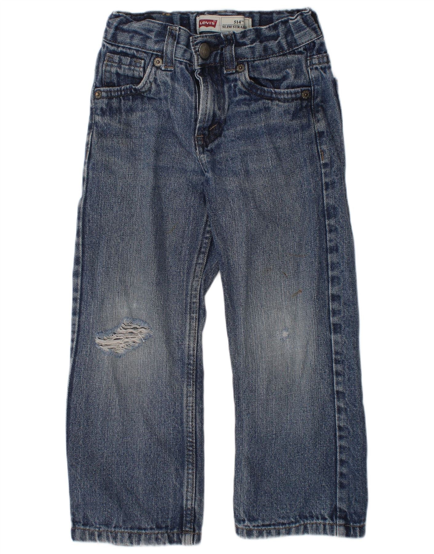 LEVI'S Girls 514 Distressed Slim Straight Jeans 3-4 Years W20 L16 Blue