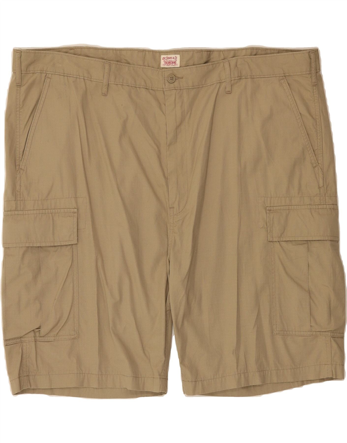 - AI Description: Levi's khaki cargo shorts, crafted from woven cotton for a classic and comfortable fit. These pre-owned shorts are in excellent condition and feature a regular fit, button closure and practical pockets. Accented with buttons, they also boast an adjustable waist for added comfort. Label size 50. Washing instructions: LAVER ET SECHER DU RECTO.