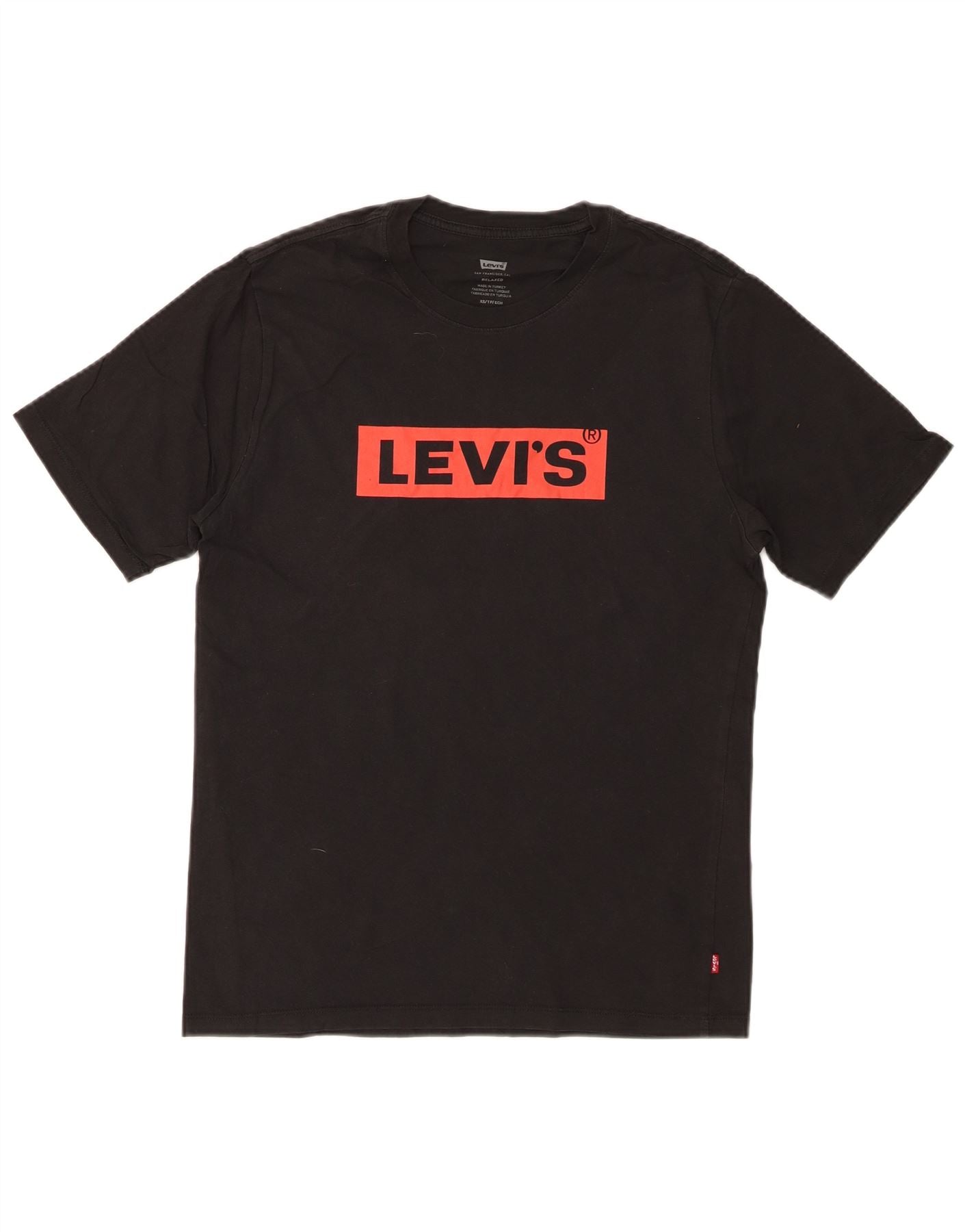 LEVI'S Herre Relaxed Fit Grafisk T-Shirt Top XS Sort Bomuld