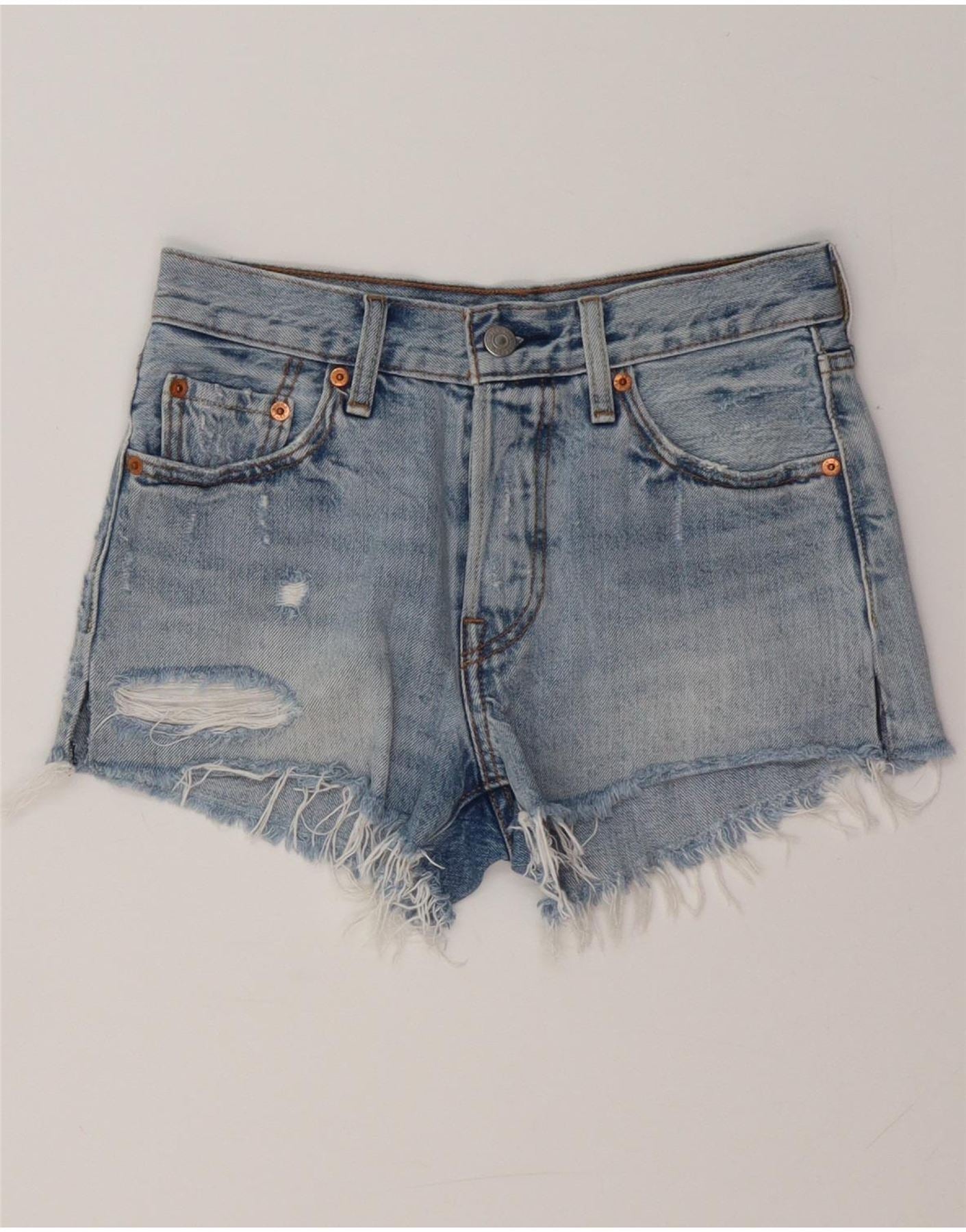 LEVI'S Womens 501 Distressed denimshorts W24 XS Blå bomuld