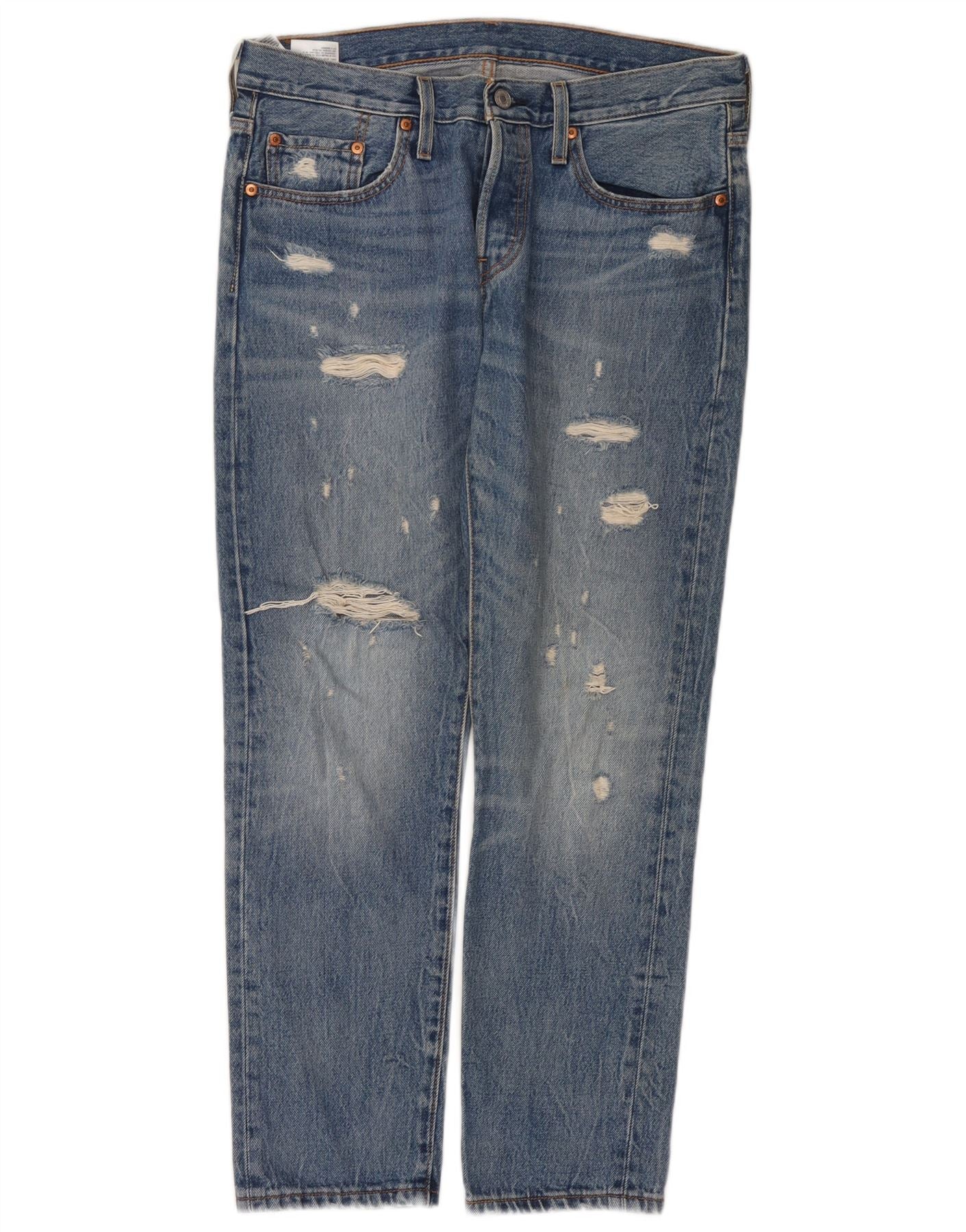 Levi's Dame 501 Distressed Straight Jeans W29 L28 Blå Bomuld