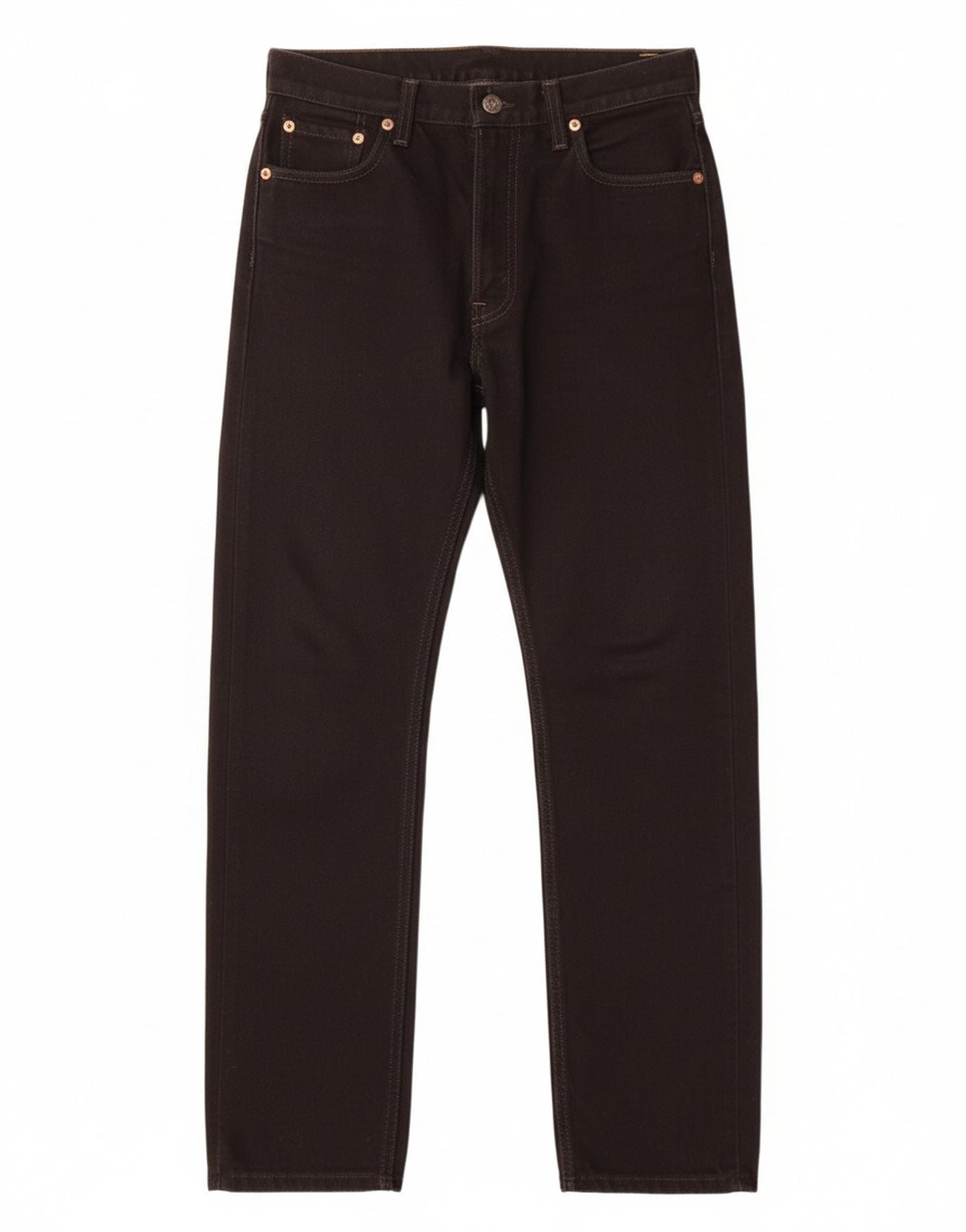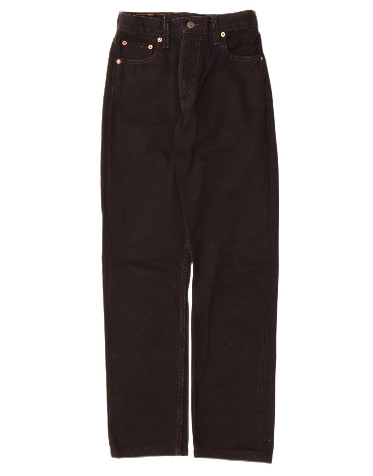 - AI Description: This Levi's women's 505 Straight Jeans are crafted from robust black cotton denim. The fabric offers a classic, enduring texture. Featuring a zip closure and a regular fit, these jeans provide timeless comfort. The straight leg silhouette ensures a versatile and flattering look. Practical pockets and a signature button accent complete this classic style.
