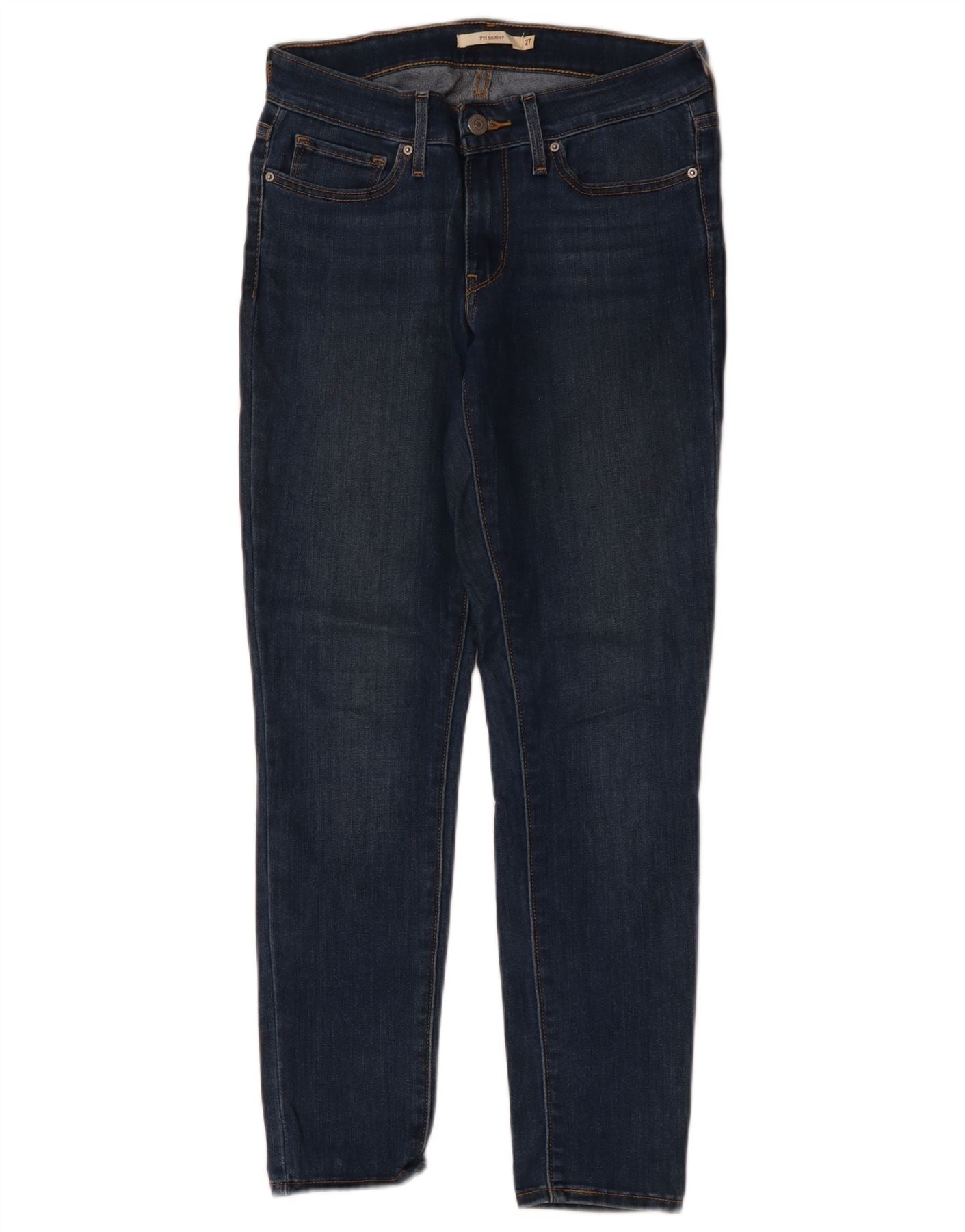 LEVI'S Dame 711 Skinny Jeans W27 L28 Marineblå Bomuld