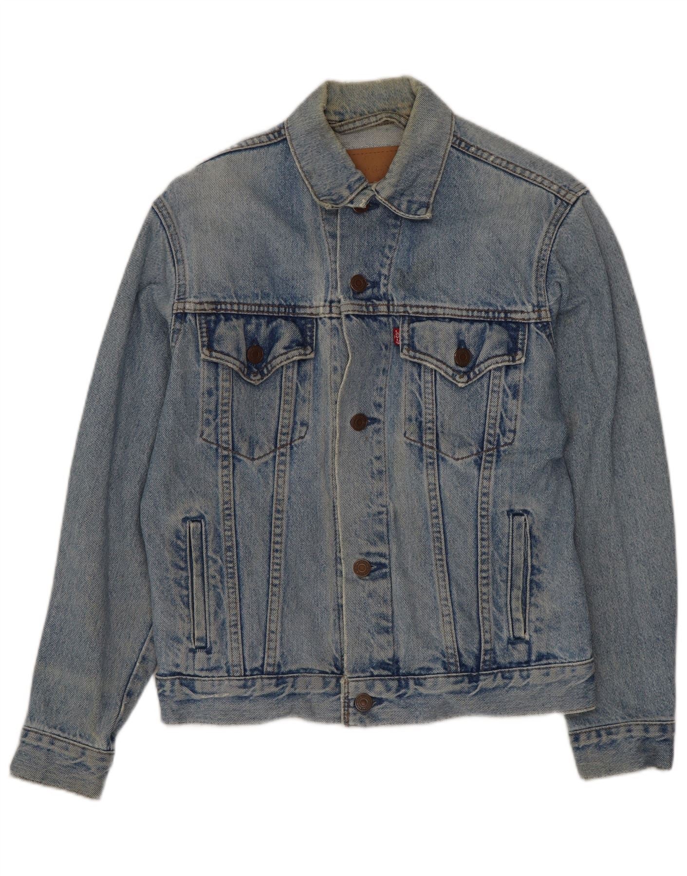 LEVI'S Dame Crop Denimjakke UK 14 Stor Blå Bomuld