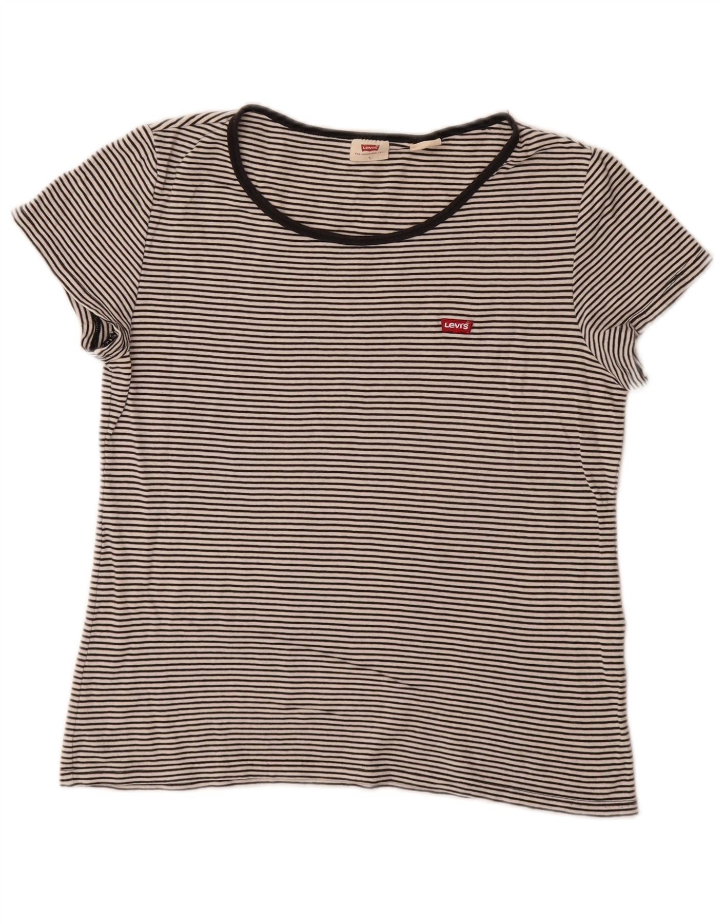 Levi's Womens Crop T-Shirt Top UK 14 Stor sort nålestribe
