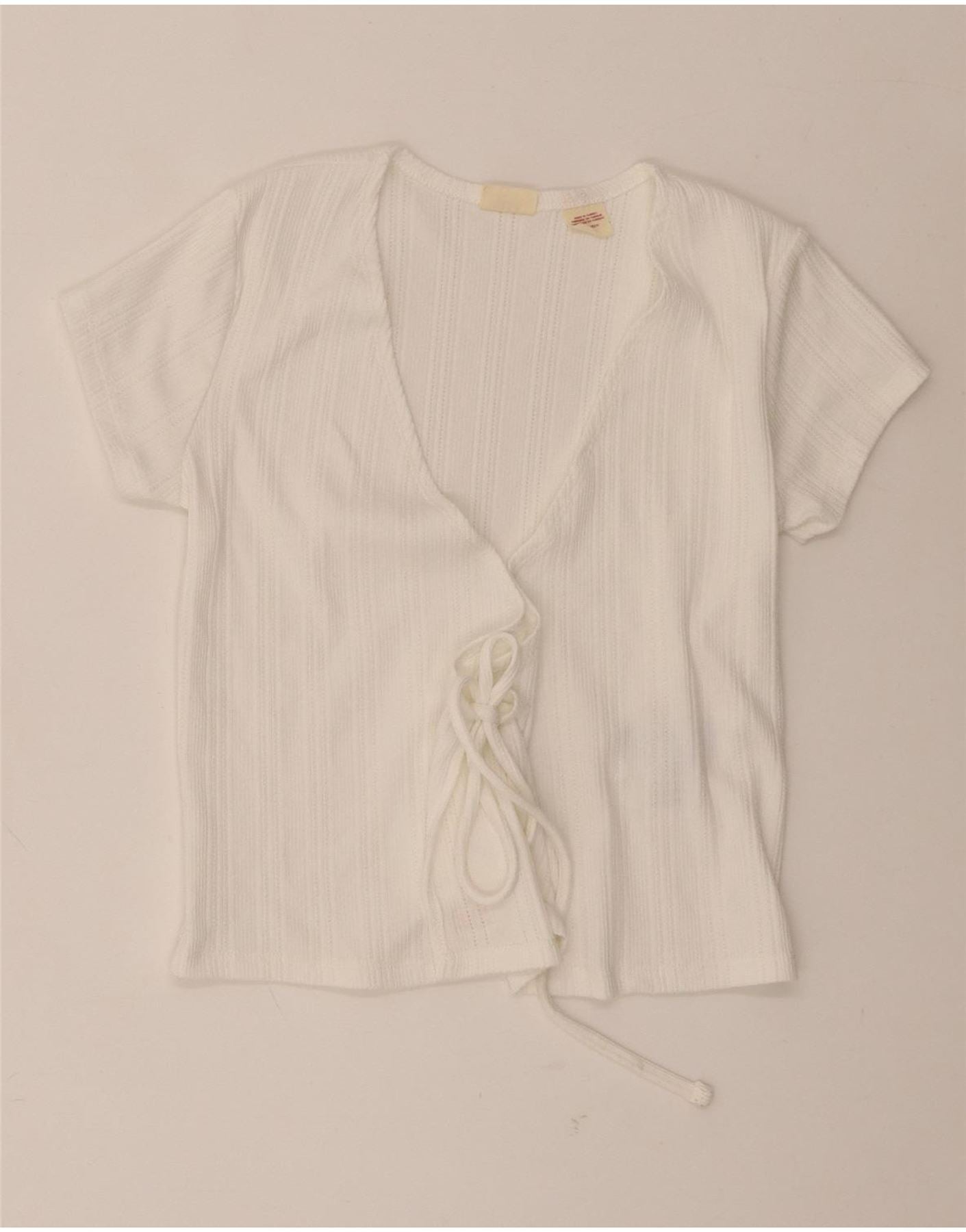 Levi's Womens Crop Wrap Shirt Bluse UK 4 XS Hvid Bomuld