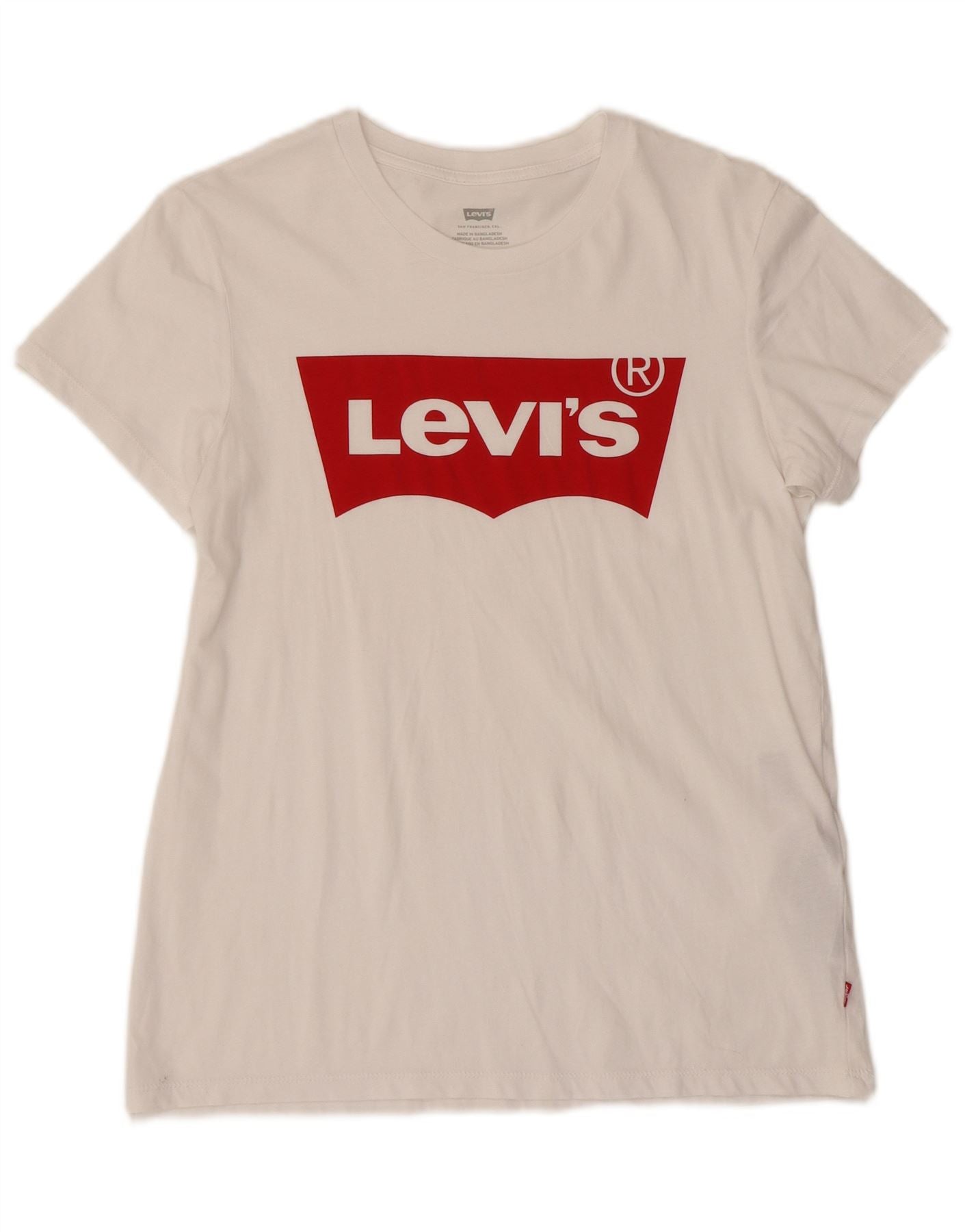 LEVI'S Grafisk T-shirt top til kvinder UK 10 Lille hvid bomuld