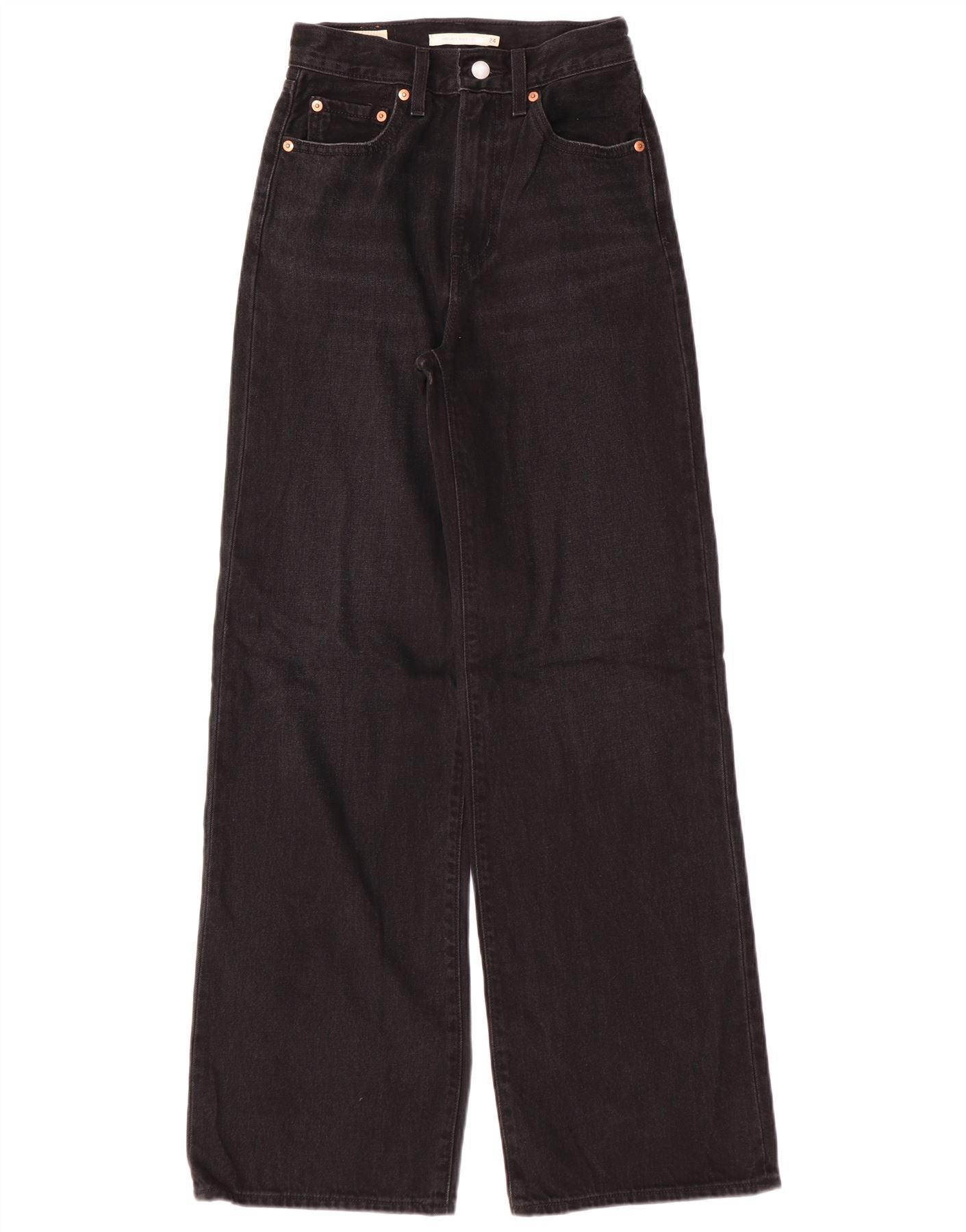 Levi's kvinders højtaljede brede ben jeans W24 L32 sort bomuld Classic