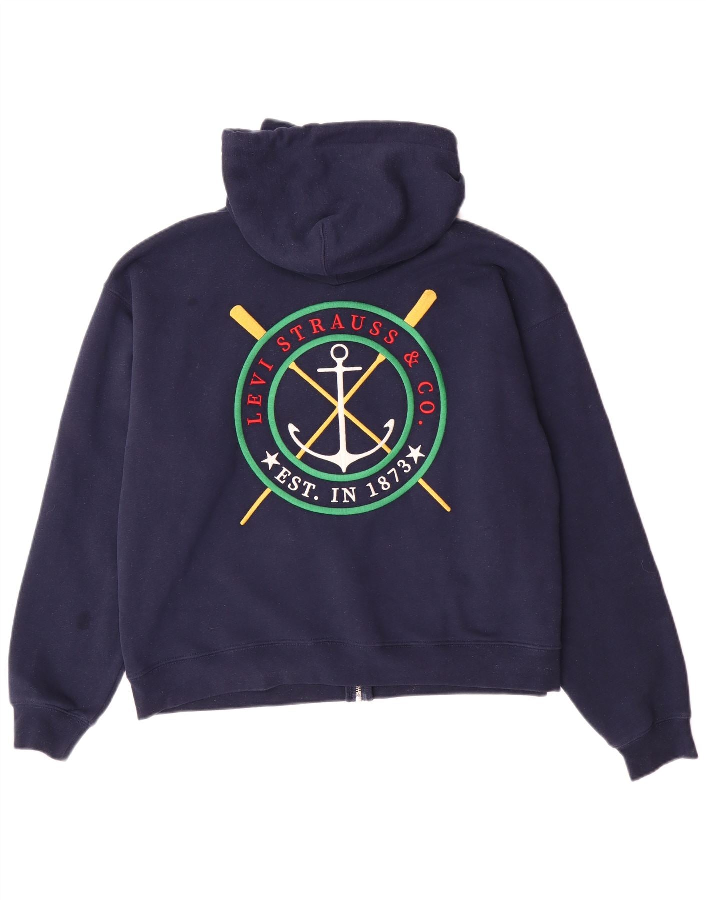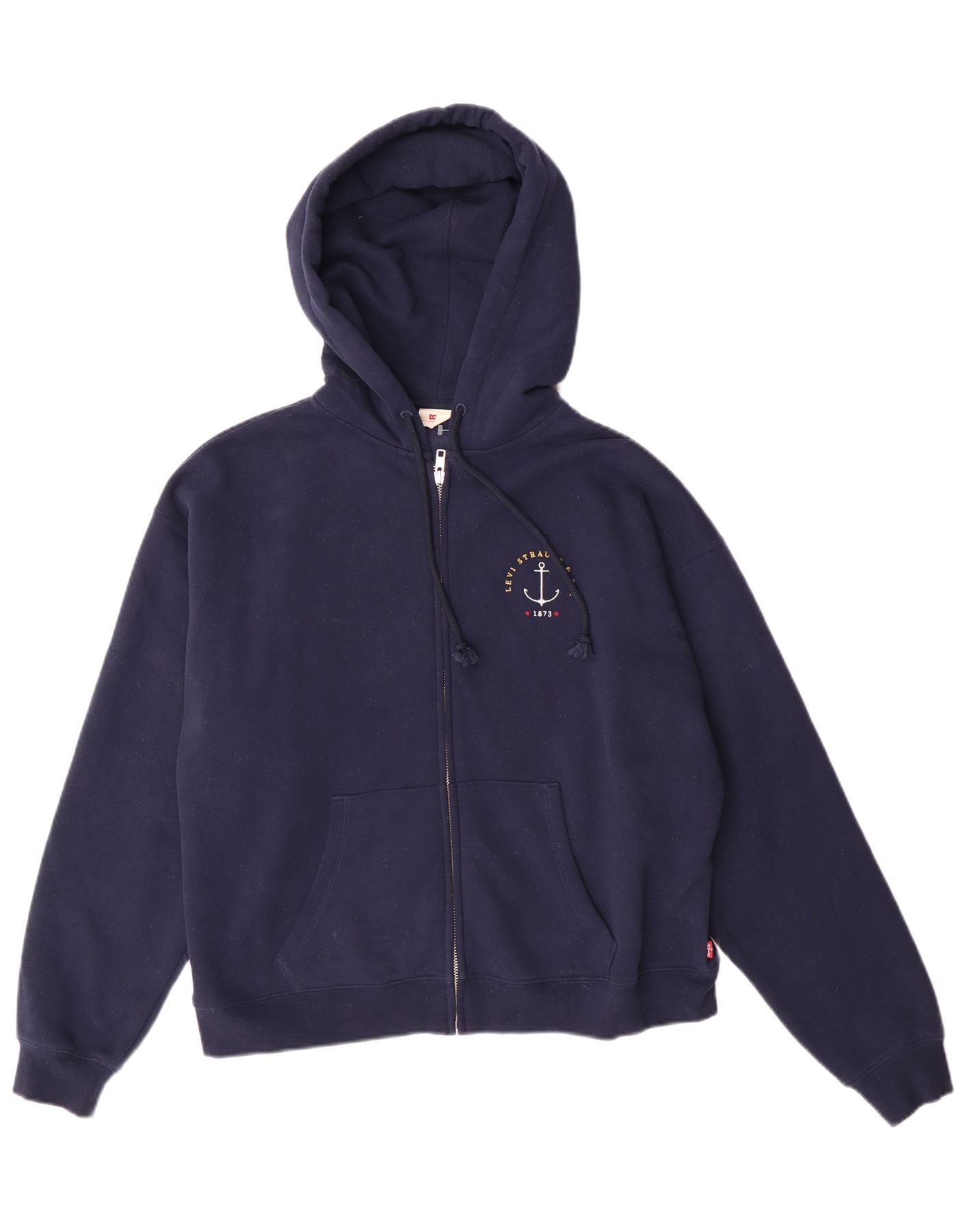 LEVI'S Dame Oversized grafisk hættetrøje Sweater med lynlås UK 10 Small Navy Blue