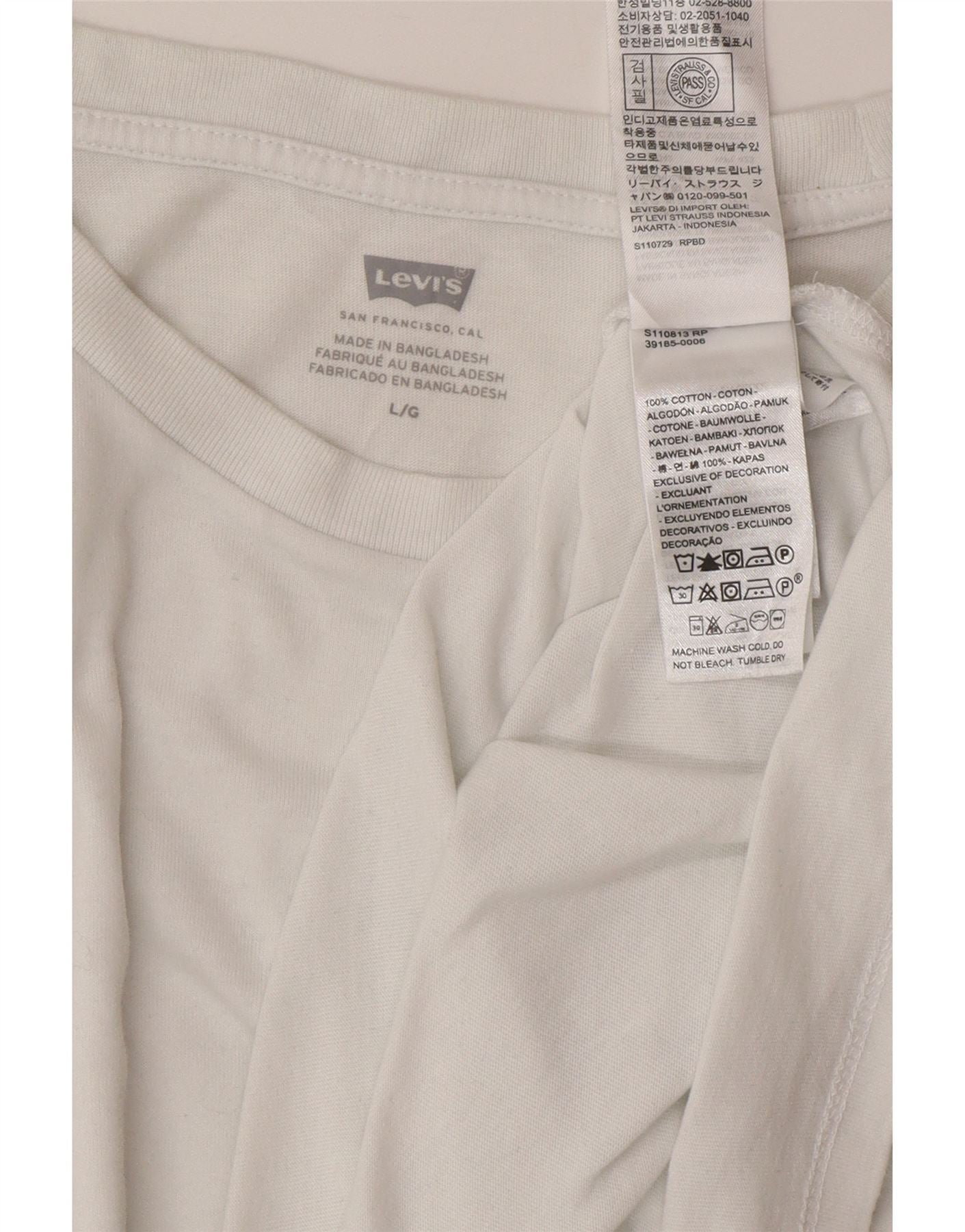 - AI beskrivelse: Denne Levi's T-shirt top til kvinder er lavet af blød hvid 100 procent bomuldsjersey. Den har en klassisk rund hals og korte ærmer. Pulloverens design giver en behagelig normal pasform. Et subtilt rødt Levi's logo er broderet på brystet. Denne klassiske stil giver tidløs alsidighed.