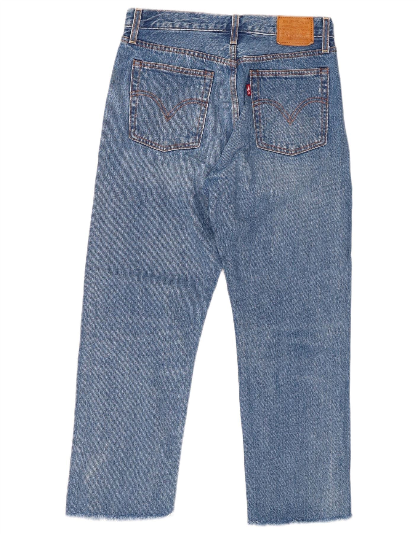 LEVI'S Dame Wedgie Straight Cropped Jeans W28 L25 Blå Bomuld