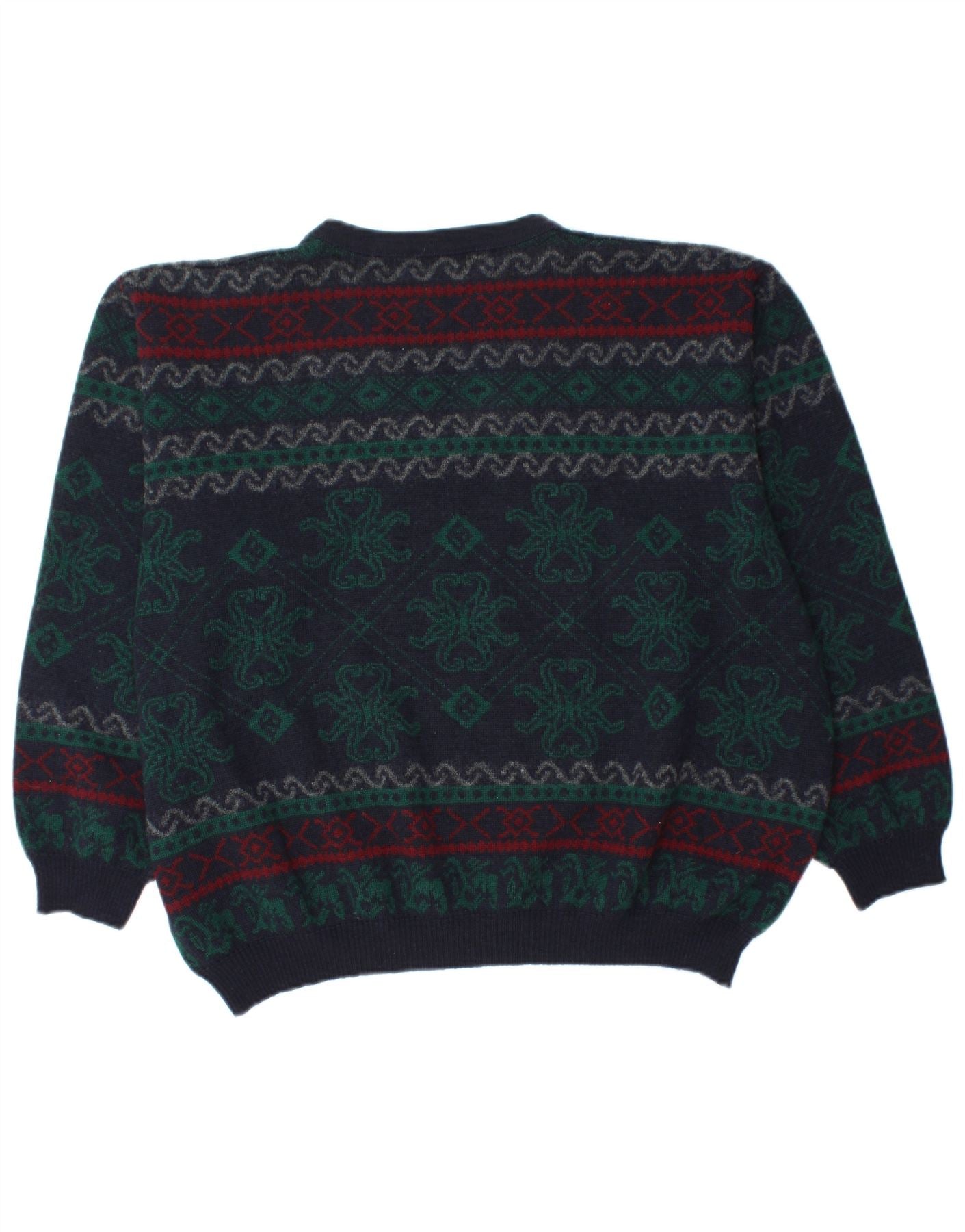 LEWINGER Dame V-hals sweater UK 20 2XL Navy Blue Fair Isle