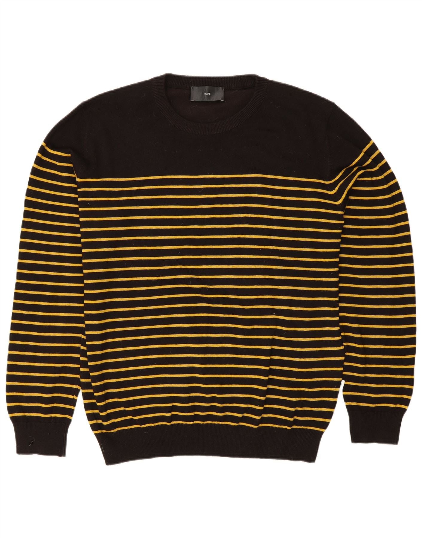 - AI beskrivelse: Denne herre sweater med rund hals fra Liu Jo er lavet af strik i 100 bomuld, der giver en blød og behagelig følelse. Den har et slående stribet mønster i sort og gul. Den klassiske runde halsudskæring og lange ærmer giver en tidløs silhuet. Ærmer og kant med ærmer sikrer en pæn finish. Denne pullover med normal pasform tilbyder ubesværet stil til hverdagsbrug.