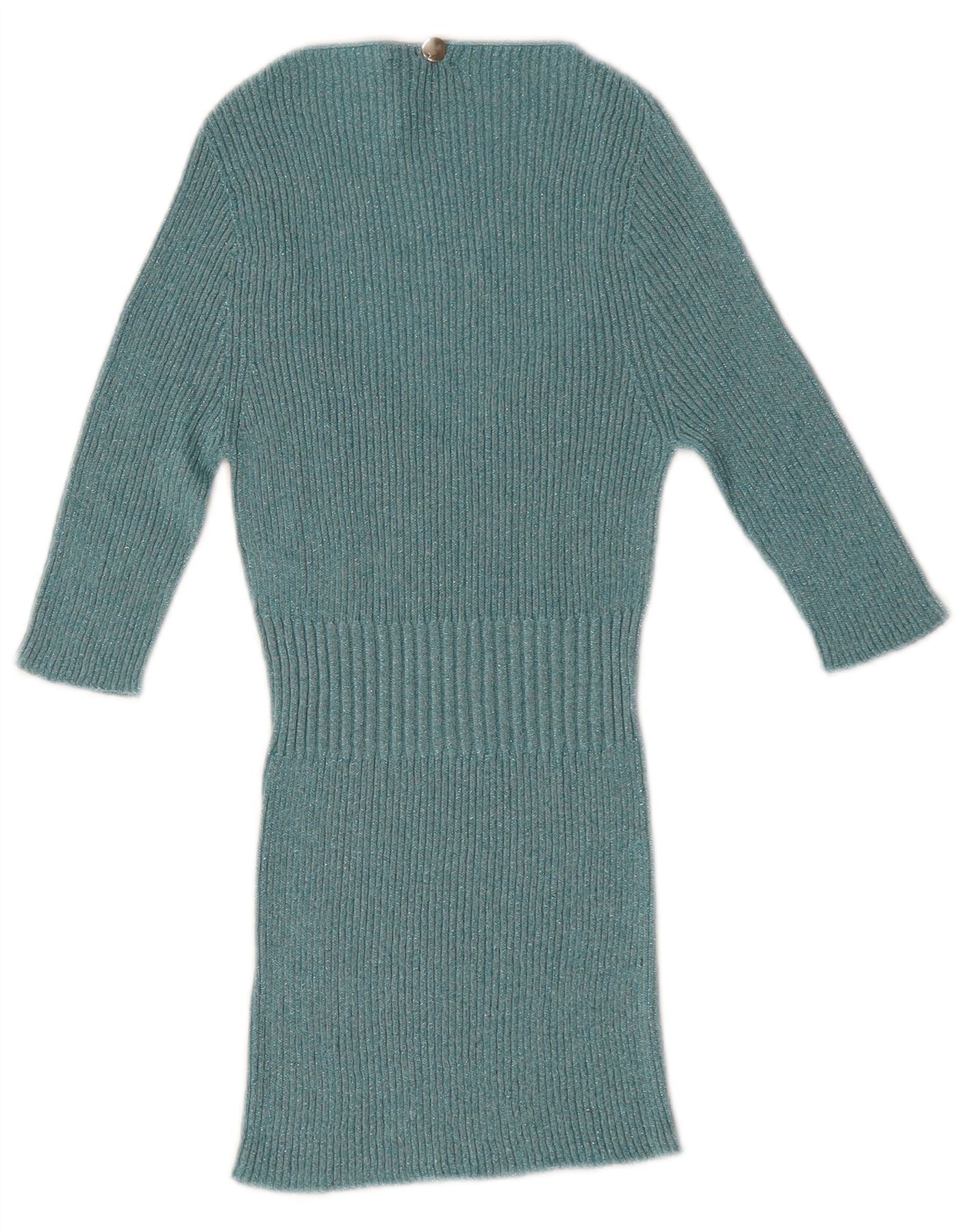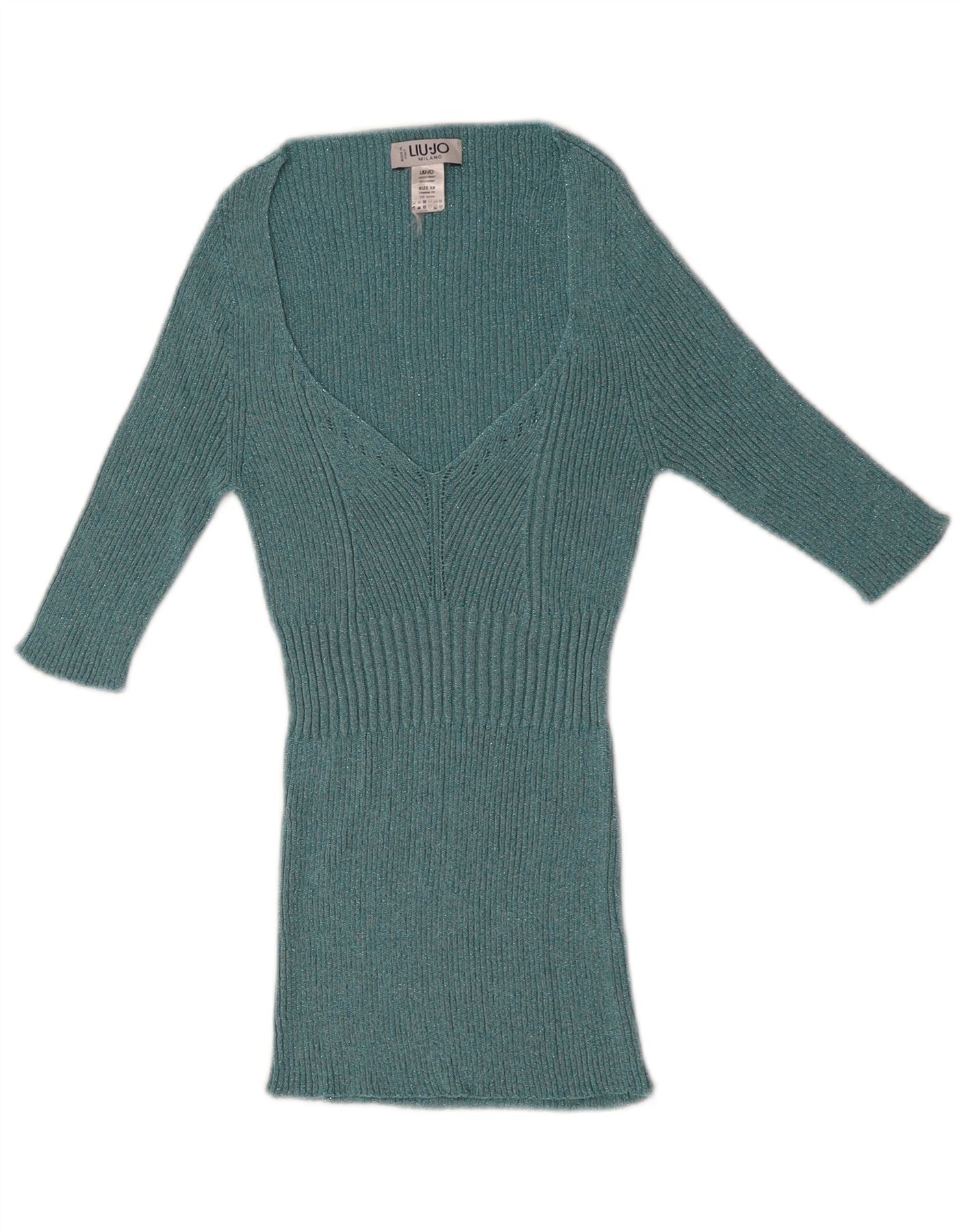 LIU JO Womens 3/4 Sleeve V-Neck Jumper Sweater UK 4 XS Blue Flecked