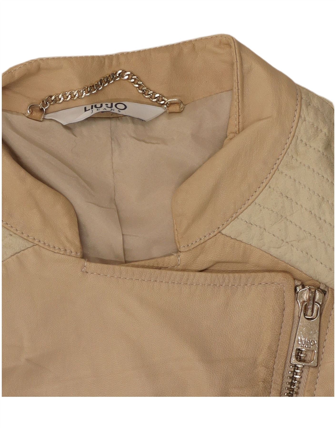 Liu Jo Womens Crop Biker Jacket IT 42 Medium Beige Colourblock Læder