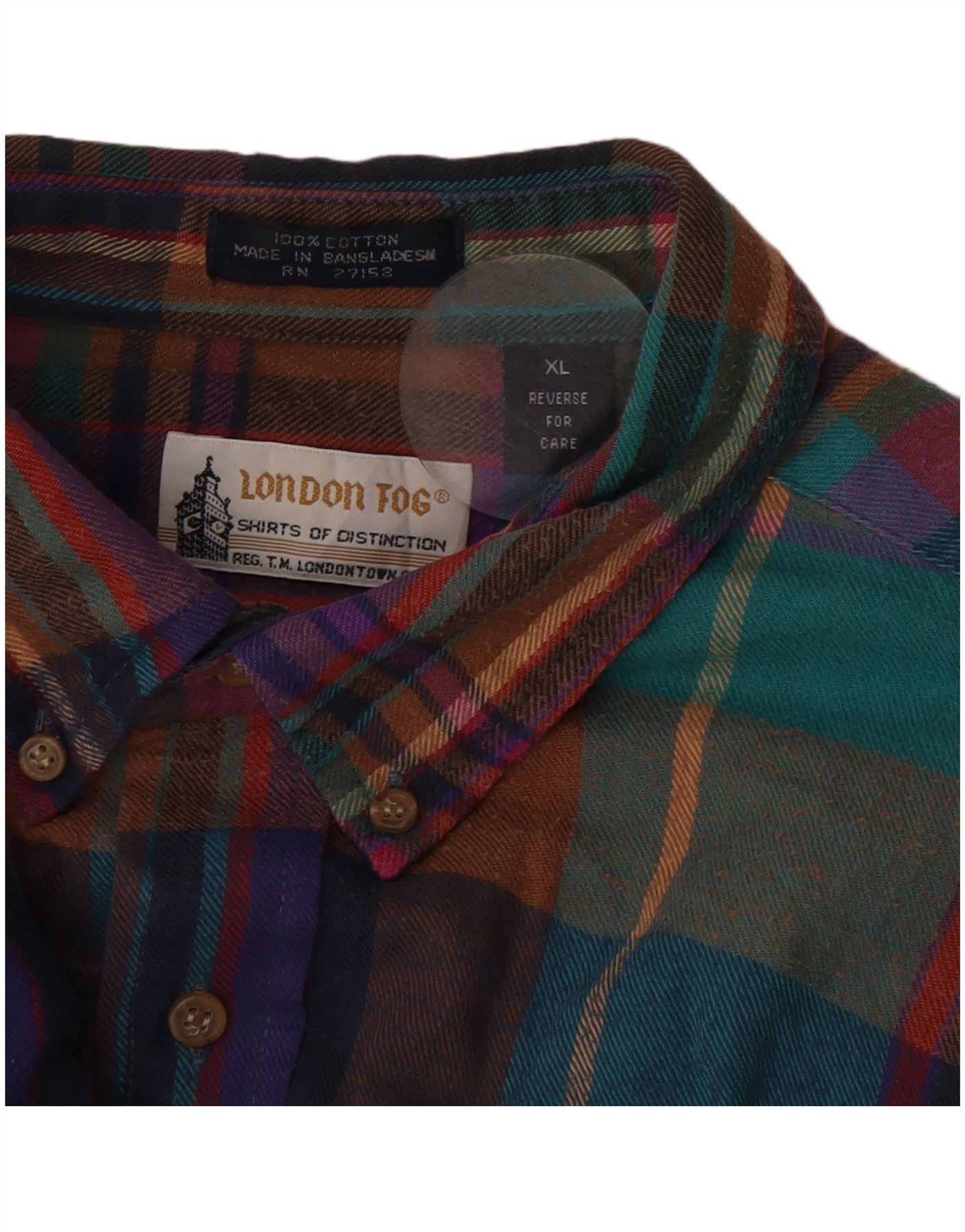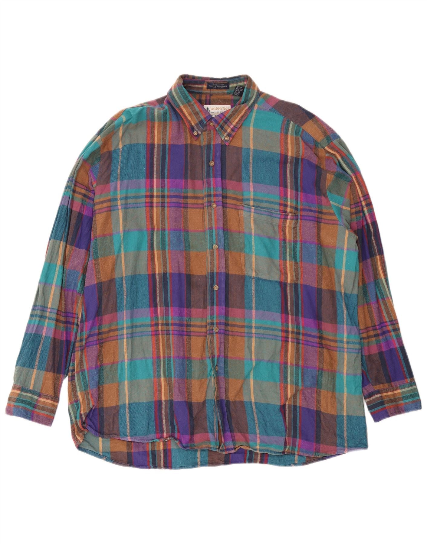 London Fog Herre Ternet Flanellskjorte XL Flerfarvet Plaid Bomuld