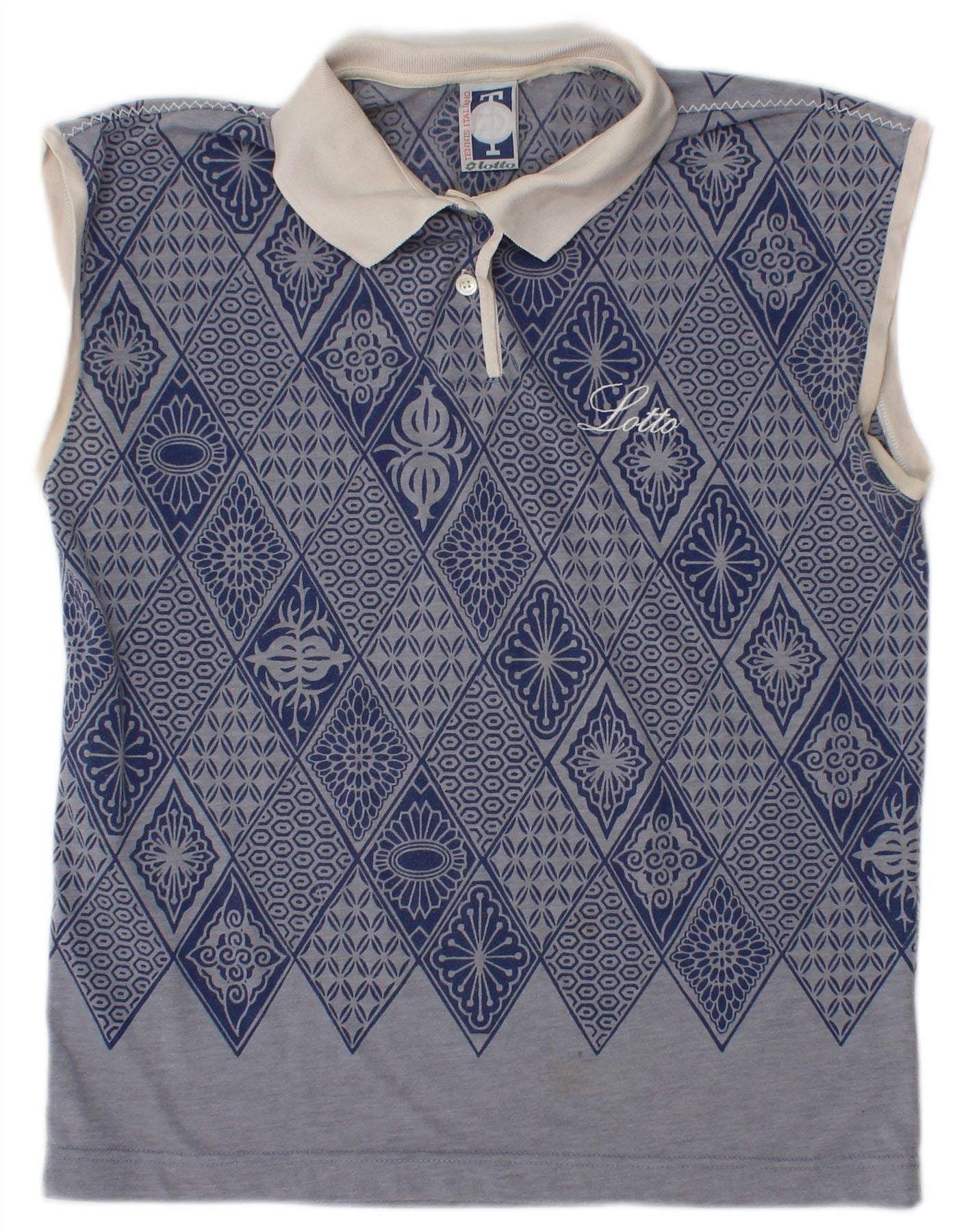 LOTTO Dame ærmeløs polo shirt UK 12 Medium Blue Geometric