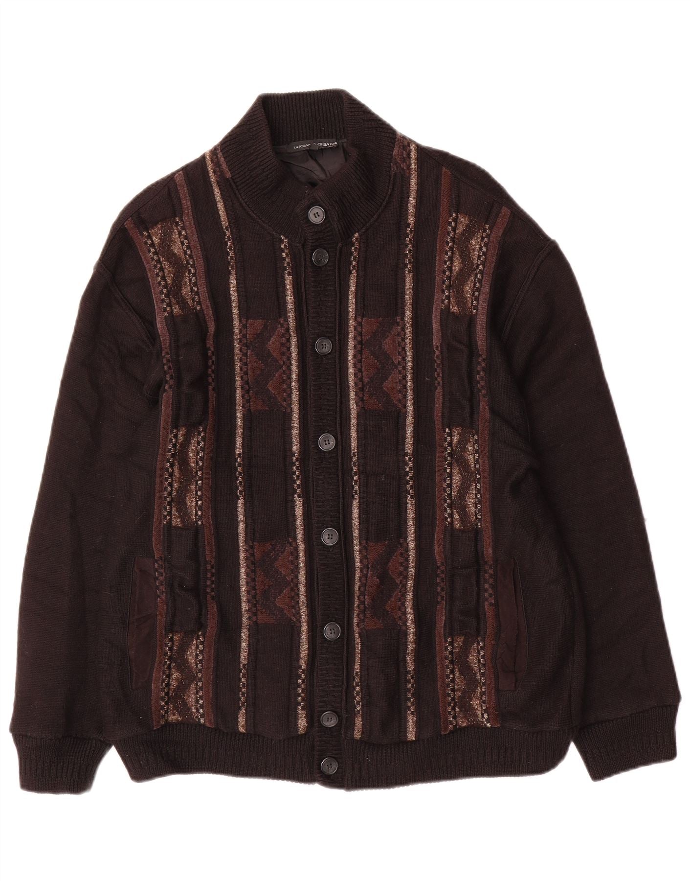 LUCIANO CHIARI Herre cardigan sweater IT 52 Stor sort geometrisk uld