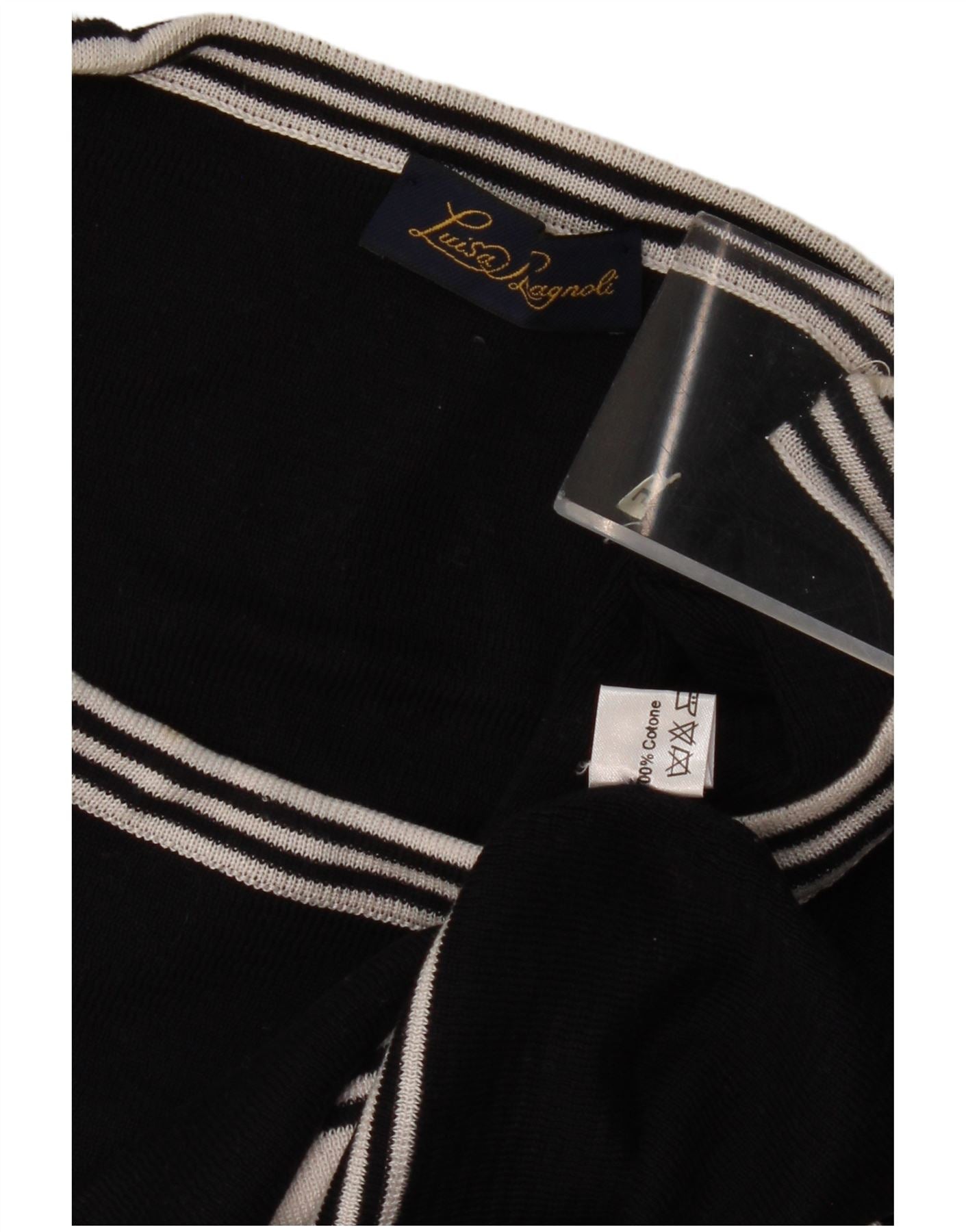 LUISA SPAGNOLI Dame Grafisk Boat Neck Jumper Sweater UK 14 Large Black