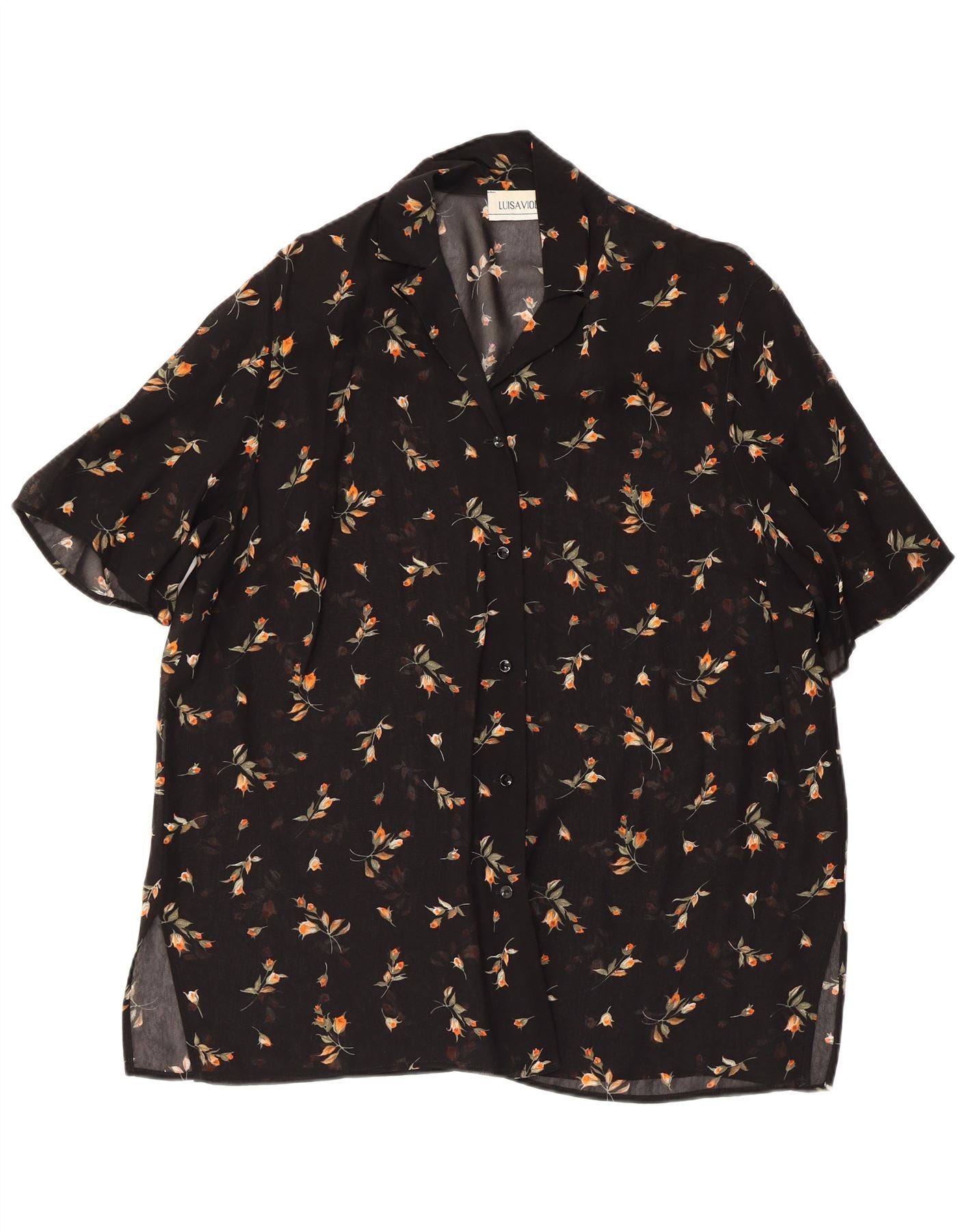 LUISA VIOLA Dame Se Through Shirt Bluse UK 20 2XL Sort Blomster