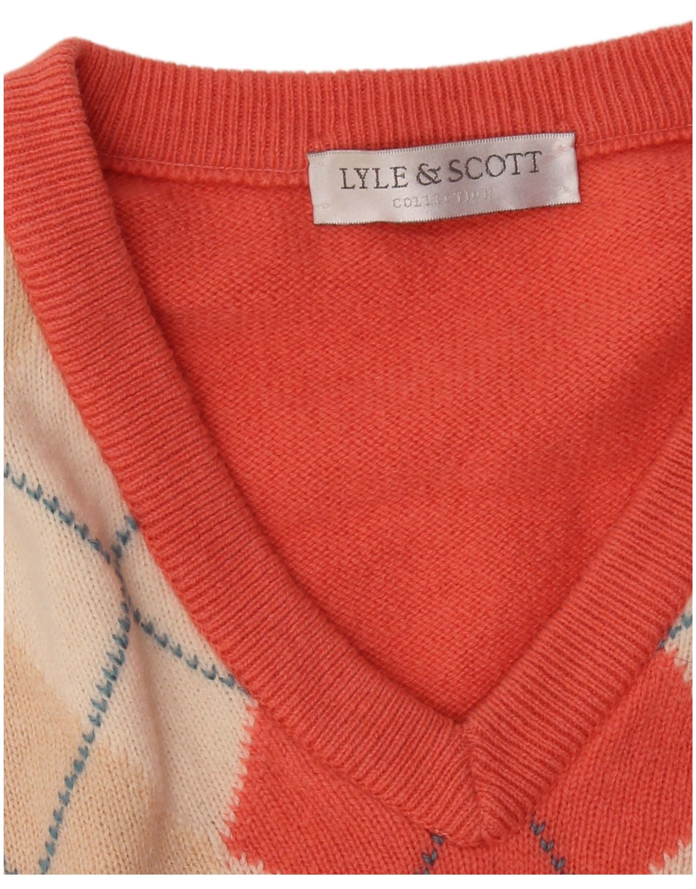 LYLE & SCOTT Herre V-hals sweater XL Orange Argyle/Diamond