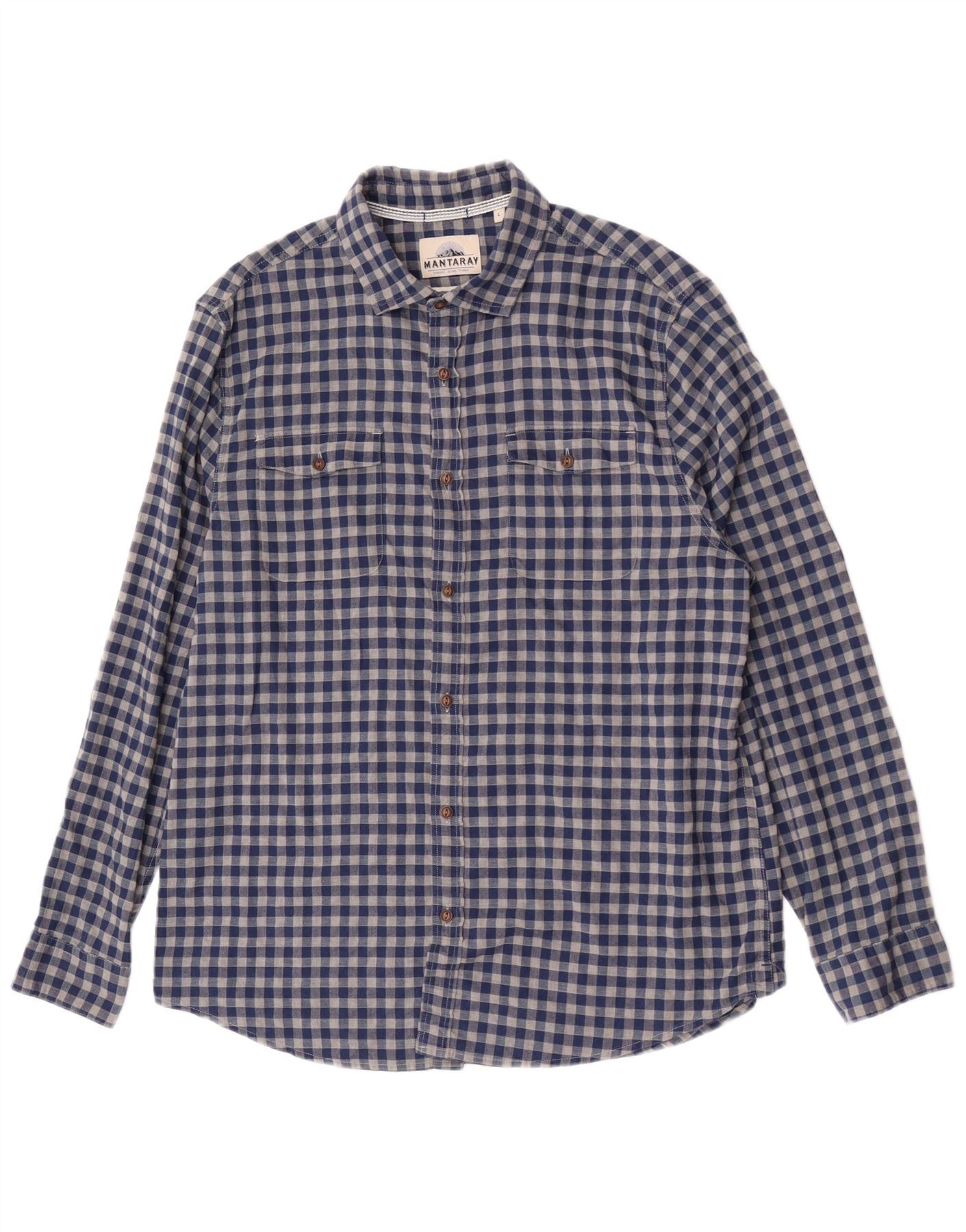 - AI beskrivelse: Denne Mantaray herre flannel skjorte er lavet af blødt vævet flannel stof. Den har et klassisk marineblåt og gråt ternet mønster. Kraveudskæringen og fuld knap foran giver et tidløst look. Lange ærmer og dobbelte brystlommer tilføjer praktiske detaljer. Dens regelmæssige pasform sikrer behageligt slid og alsidig styling.
