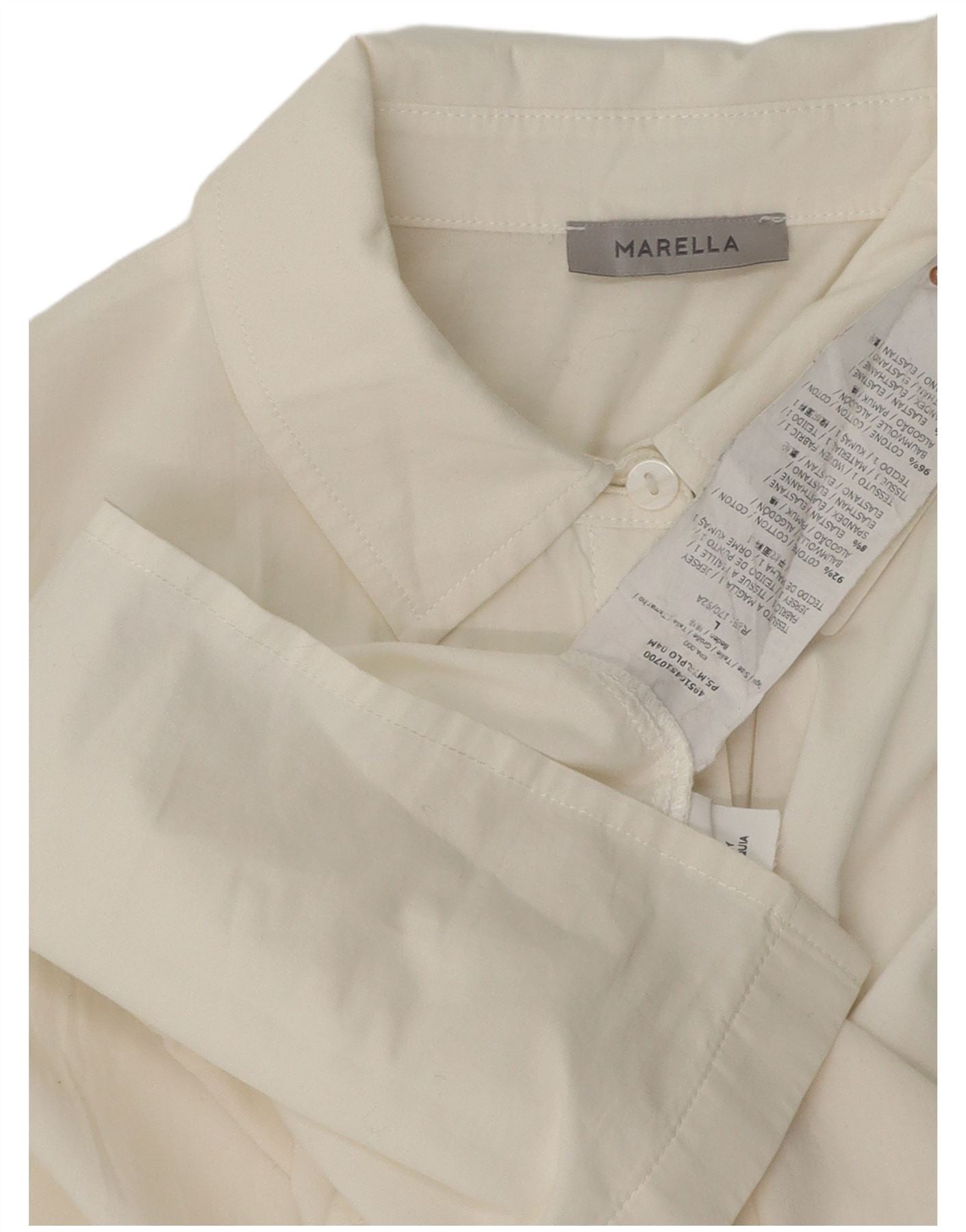 Marella Dame Longline Shirt Bluse UK 16 Large Off White Bomuld