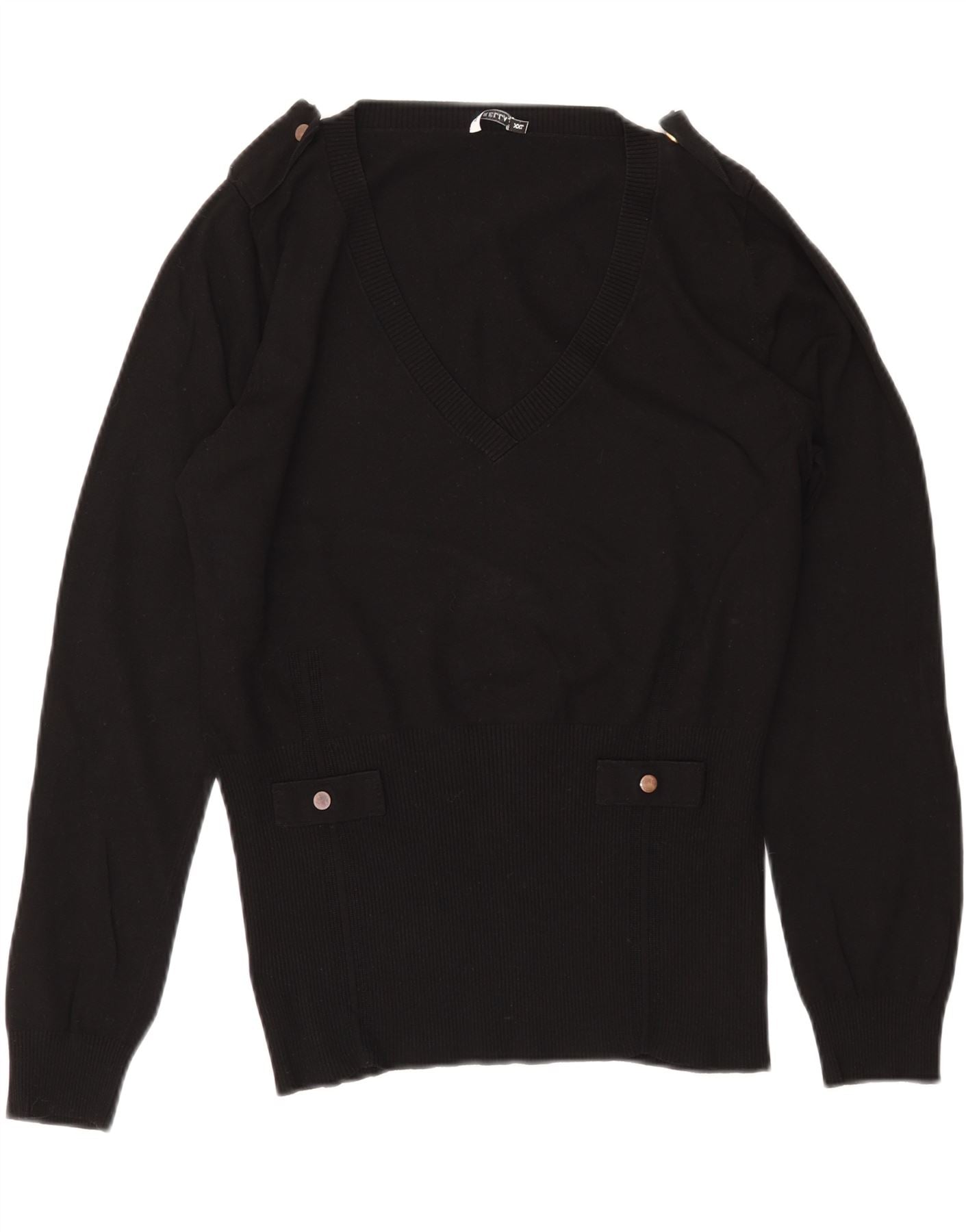 MARELLA Militær V-hals sweater til kvinder UK 20 2XL Sort viskose