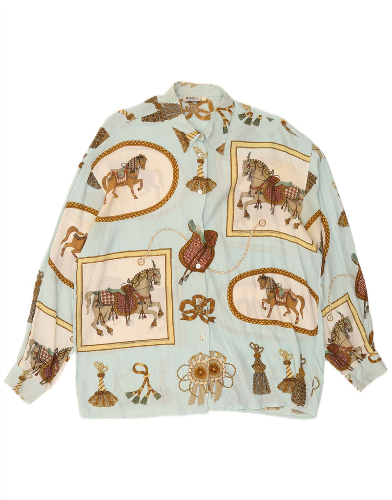 MARELLA Womens Overshirt Abstract Pattern Shirt Blouse UK 12 Medium Blue