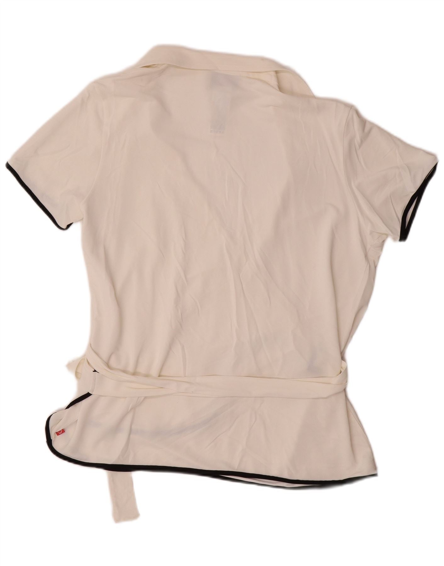 MARINA RINALDI Dame Wrap Kortærmet Skjorte Bluse UK 14 Medium White