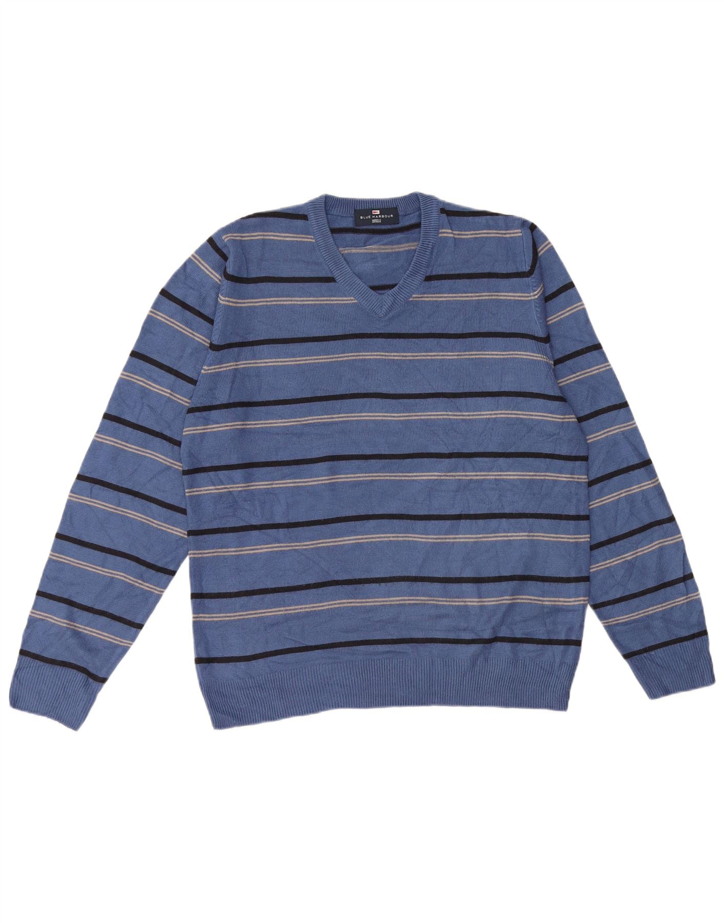 MARKS & SPENCER Mens Blue Harbour V-Neck Jumper Sweater Small Navy Blue
