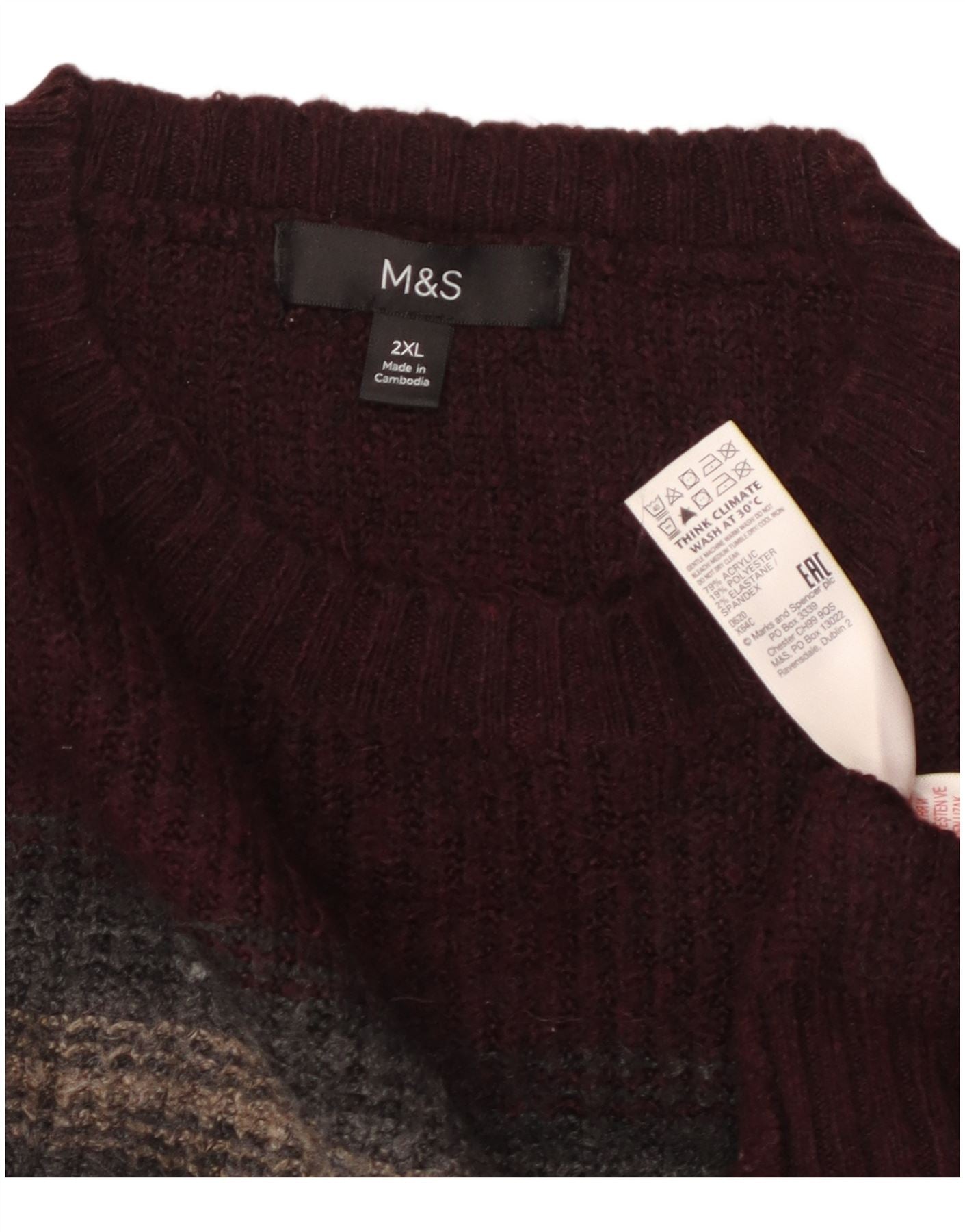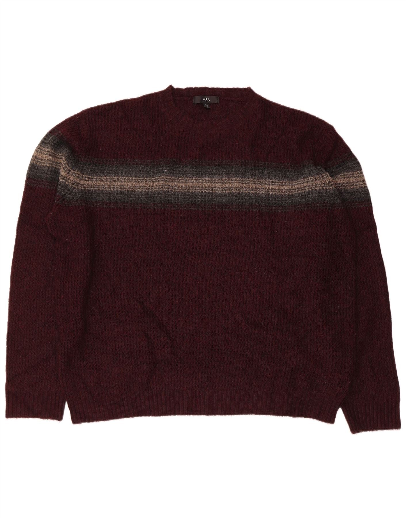 MARKS & SPENCER Herre sweater med rund hals 2XL Bourgogne stribet akryl