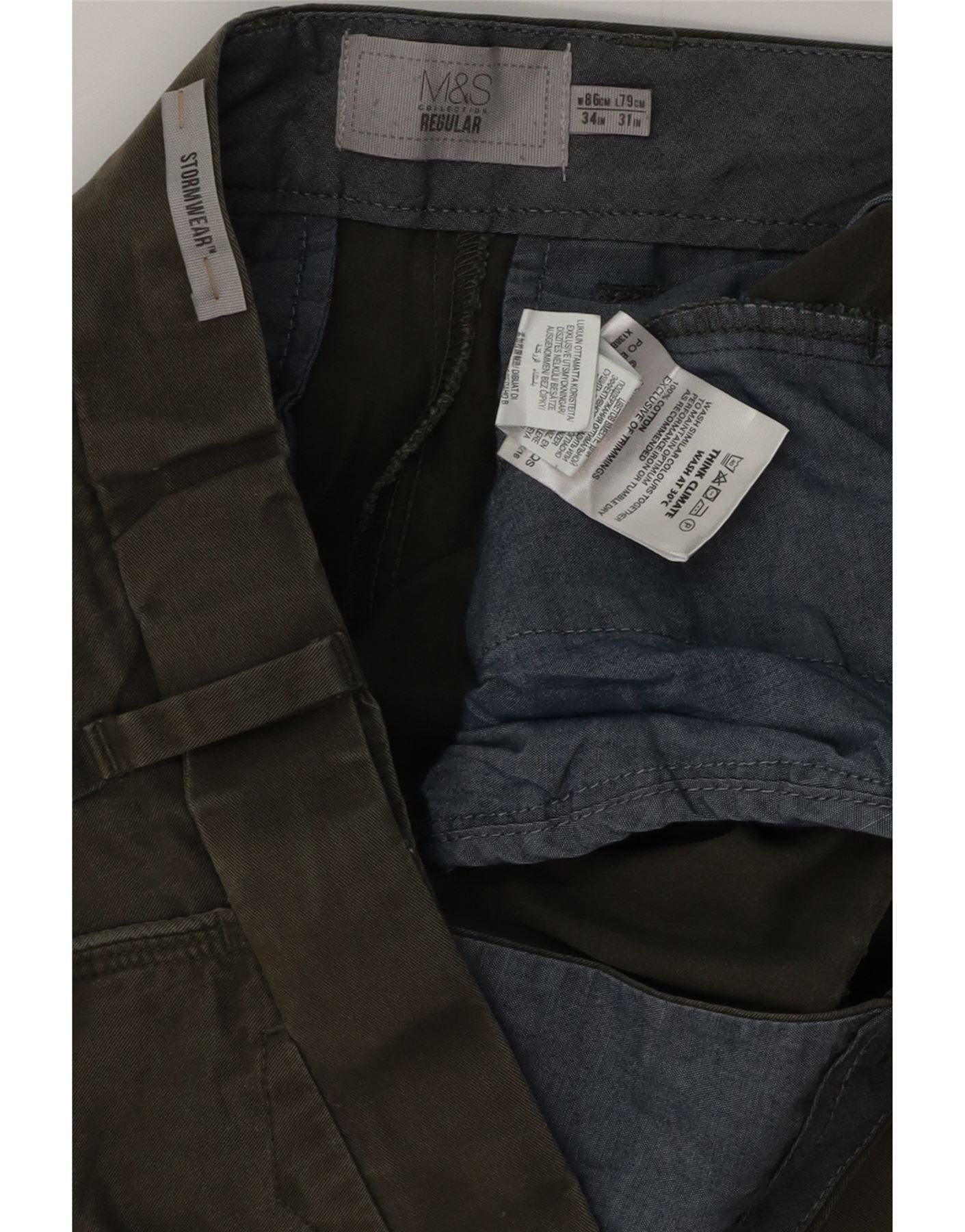 - AI beskrivelse: Disse Marks & Spencer Chino-bukser til mænd er lavet af en holdbar kakivævet blanding af polyester og bomuld. De har et klassisk lige ben og en behagelig normal pasform. Knappen og lynlåsen sikrer en sikker brug. Der medfølger praktiske lommer, og stoffet er vandafvisende for ekstra brug. Dette design tilbyder tidløs stil og hverdagskomfort.
