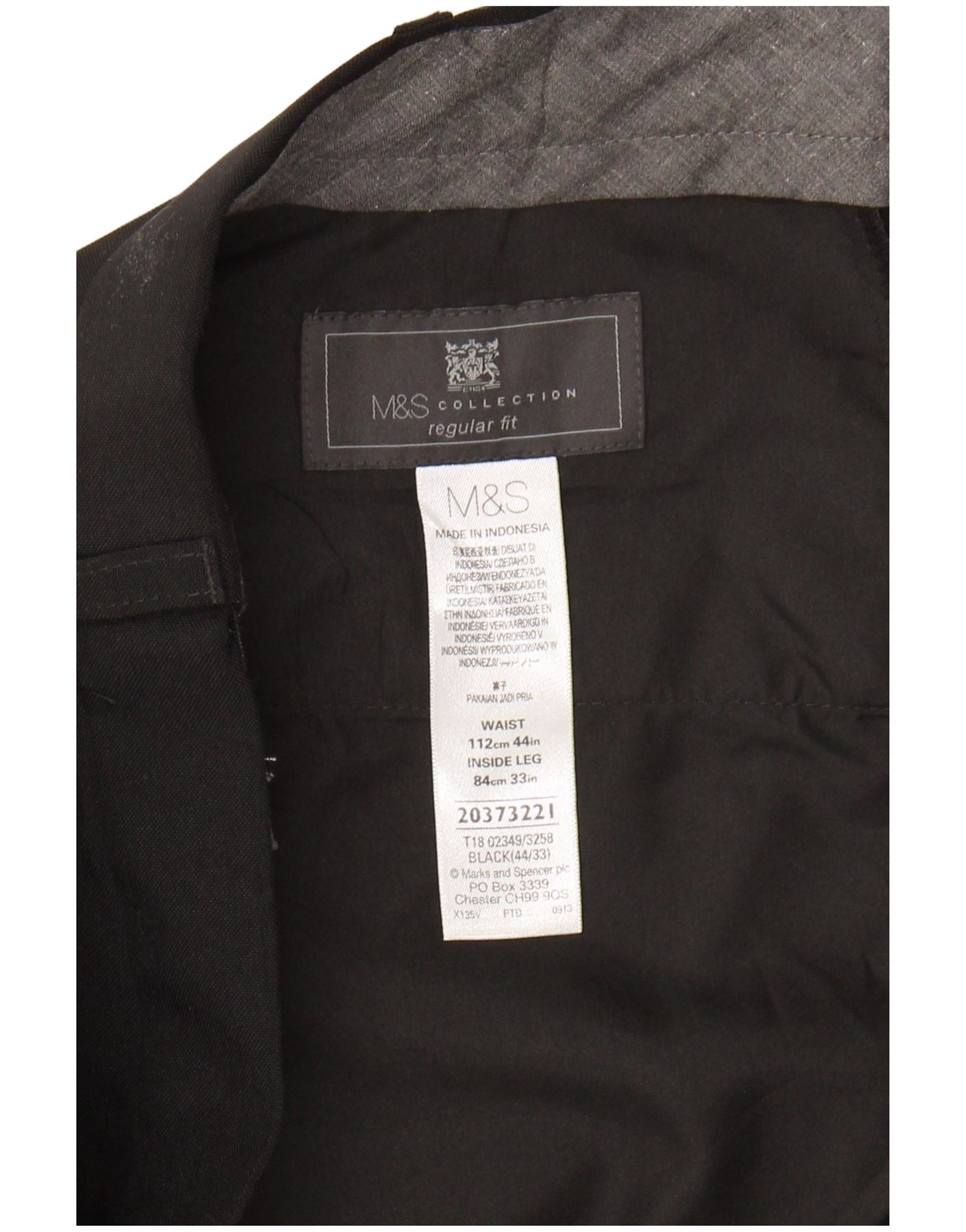 MARKS & SPENCER Mens Regular Fit Straight Suit Trousers W44 L33 Black