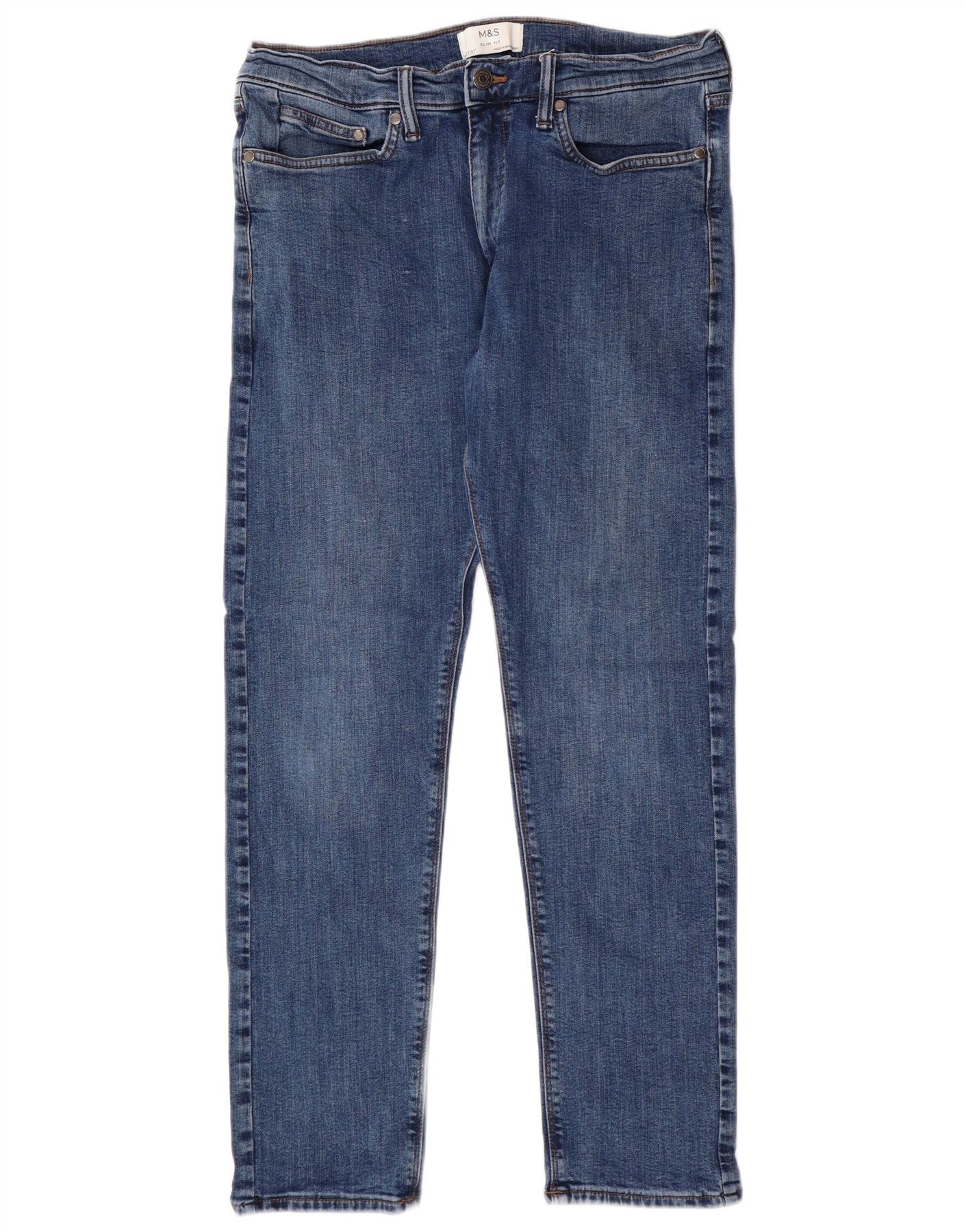 MARKS & SPENCER Slim Jeans til mænd W32 L29 Blue Cotton Classic