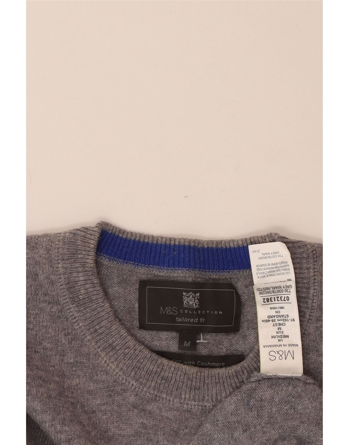 MARKS & SPENCER Herre skræddersyet pasform med rund hals sweater mellemgrå