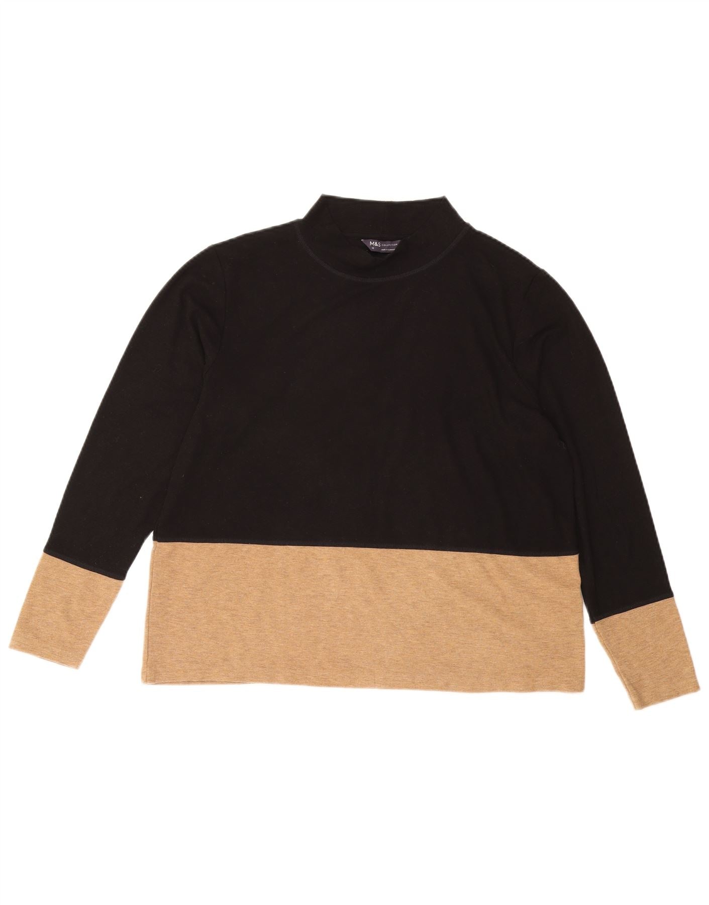 MARKS & SPENCER Damebluse Top UK 16 Large Black Colourblock Polyester