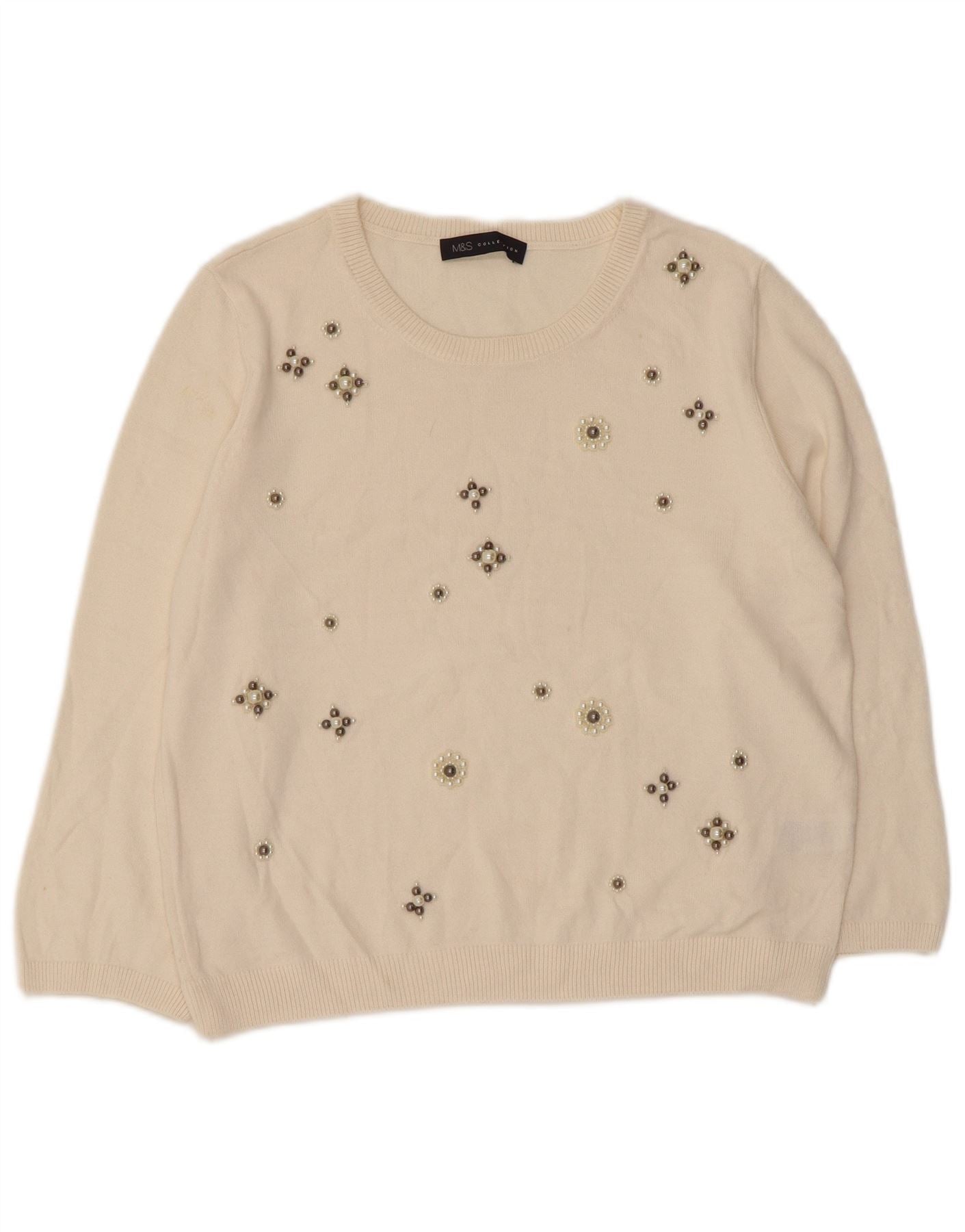 MARKS & SPENCER Dame Boat Neck Jumper Sweater UK 14 Large Off White