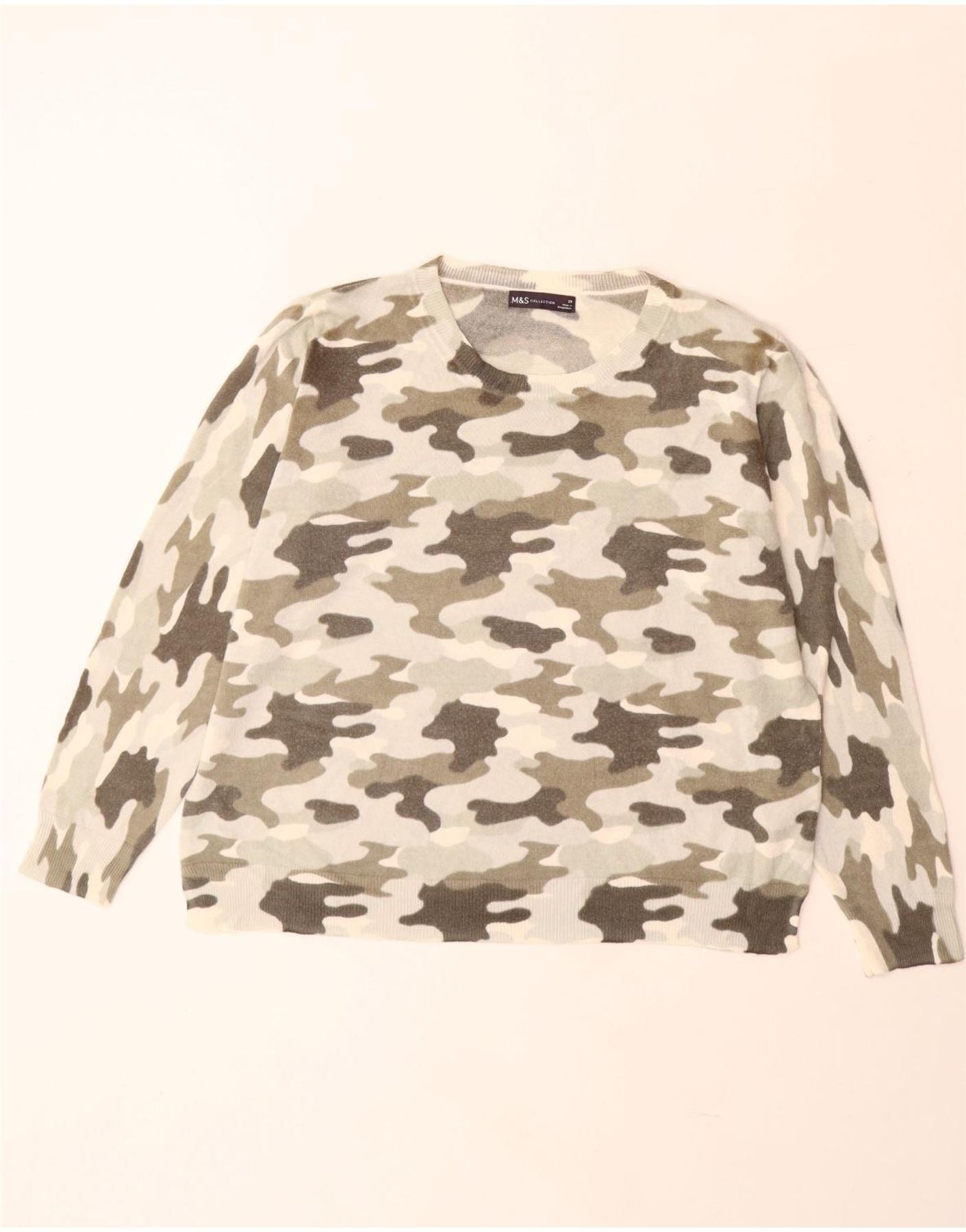 MARKS & SPENCER Dame Boat Neck Jumper Sweater UK 20 2XL Beige Camouflage