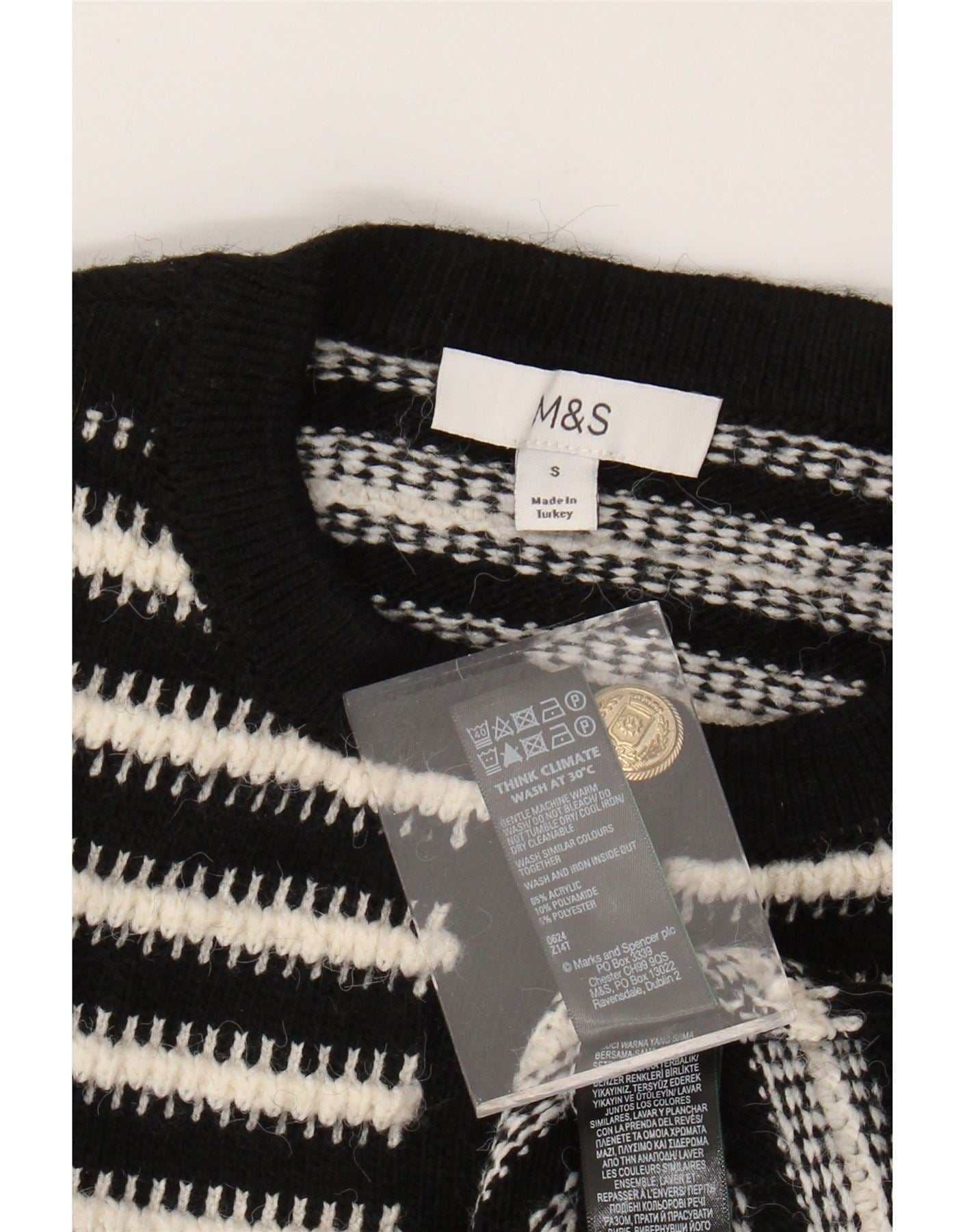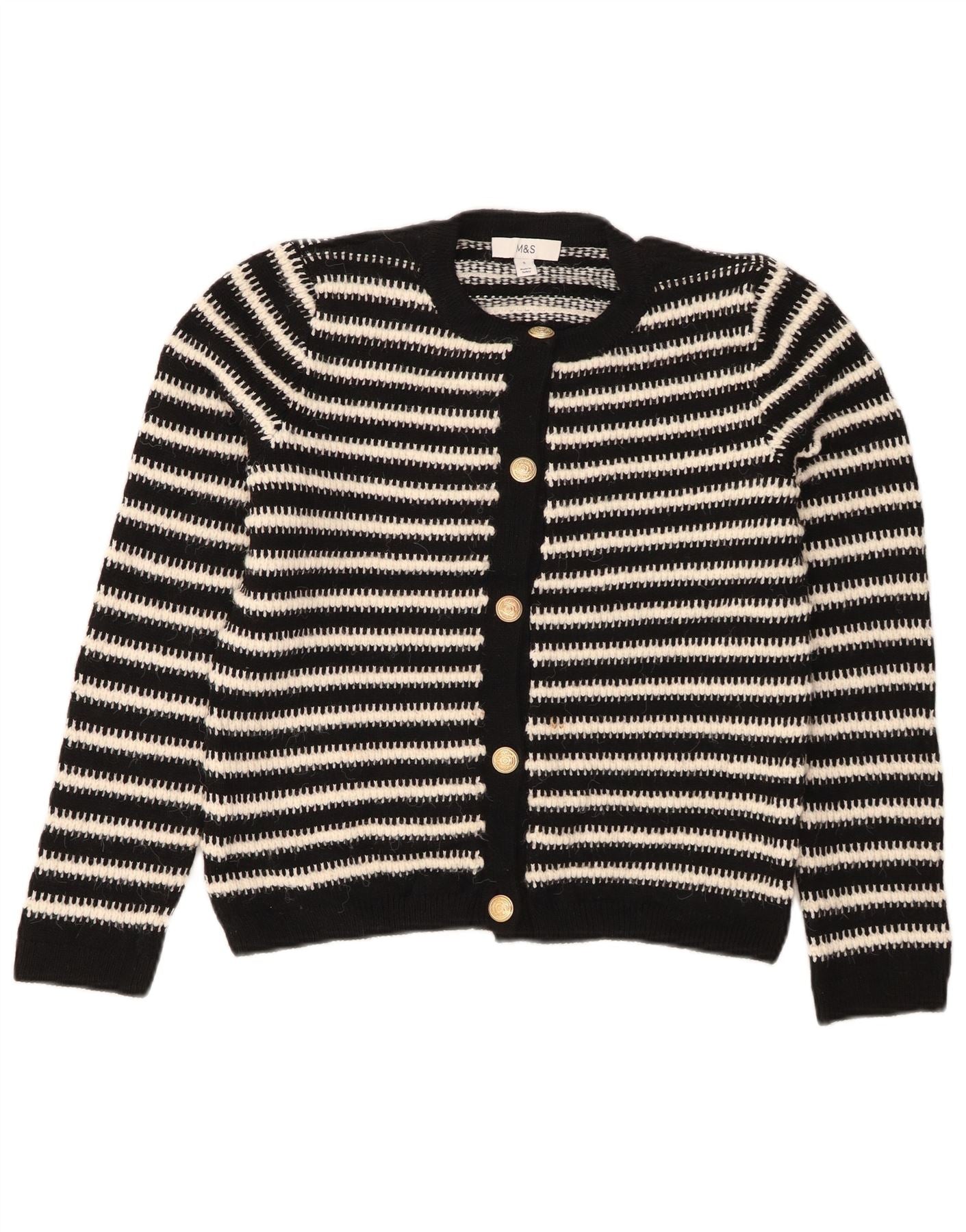 MARKS & SPENCER Dame cardigan sweater UK 10 Lille sort stribet akryl