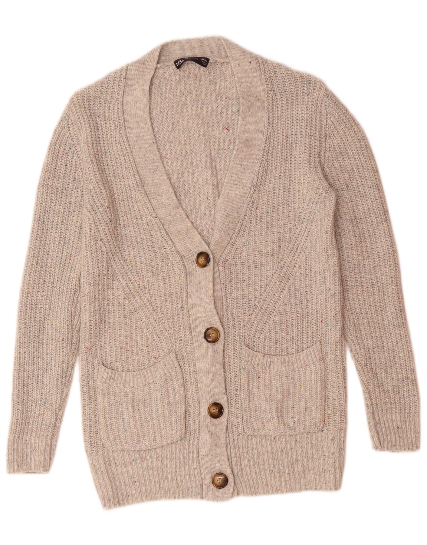Marks & Spencer Dame Cardigan Sweater UK 10 Small Grey Flecked Bomuld