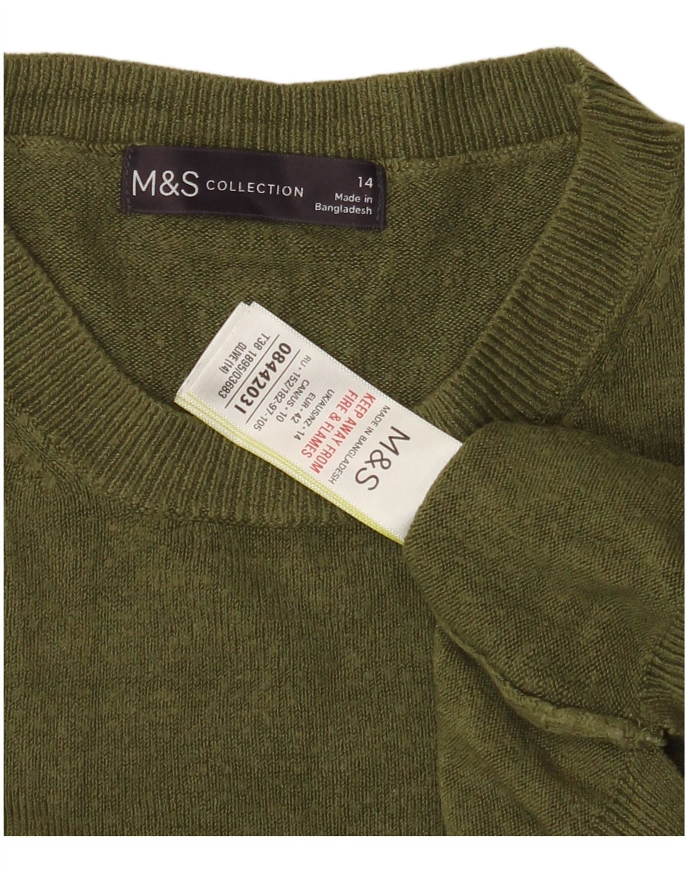 MARKS & SPENCER Dame sweater med rund hals DK 14 Stor grøn akryl