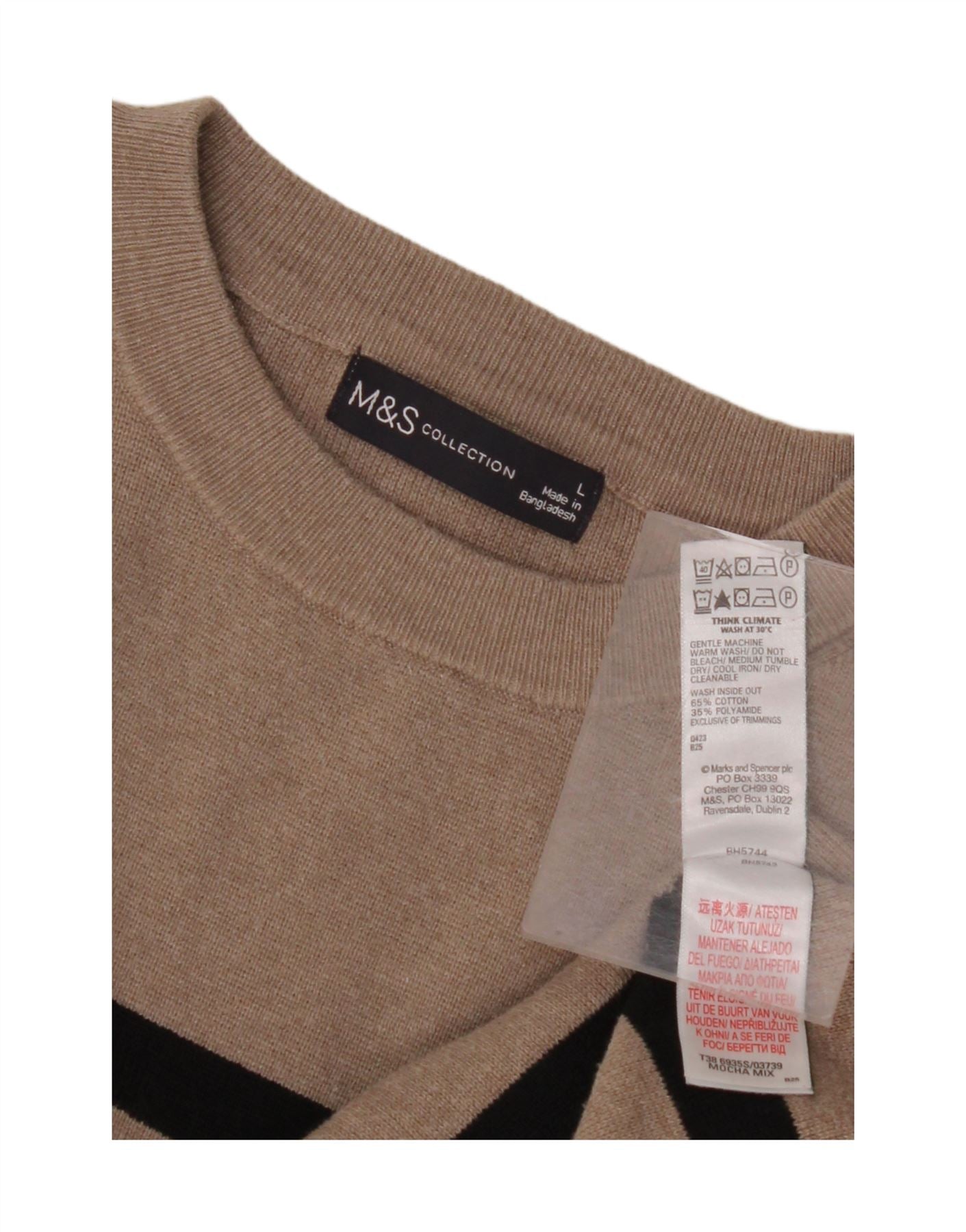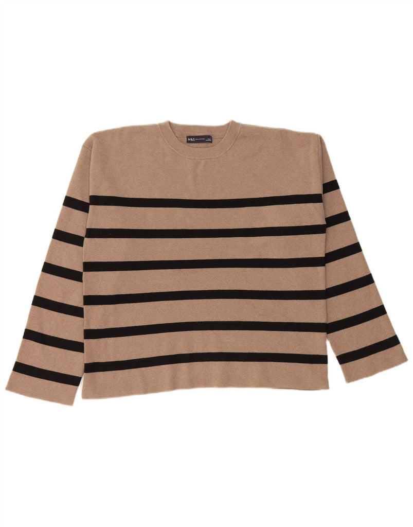 MARKS & SPENCER Dame sweater med rund hals DK 16 Stor Beige Stribet