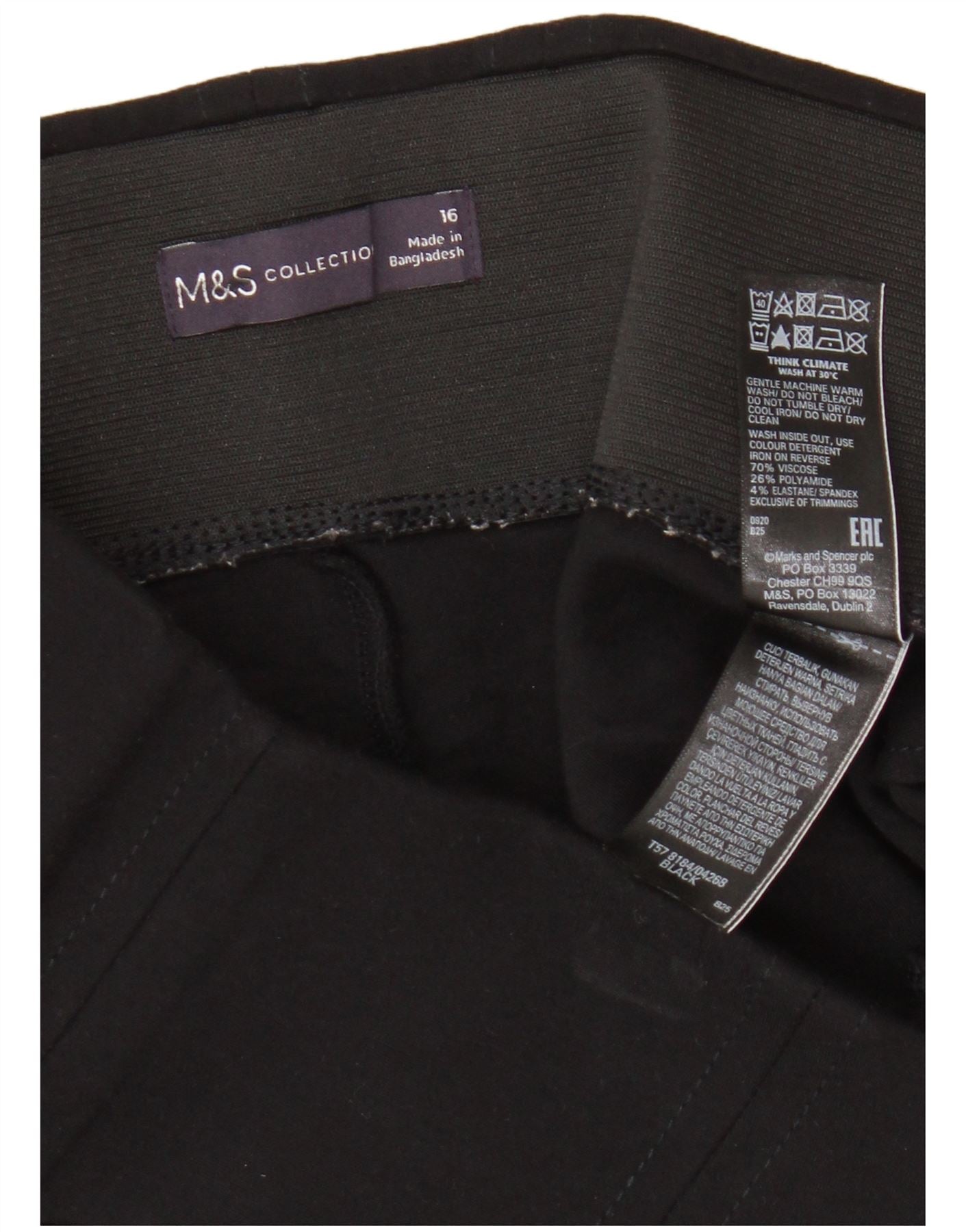 Marks & Spencer Womens Crop Leggings UK 16 Large W32 L27 Black Viscose